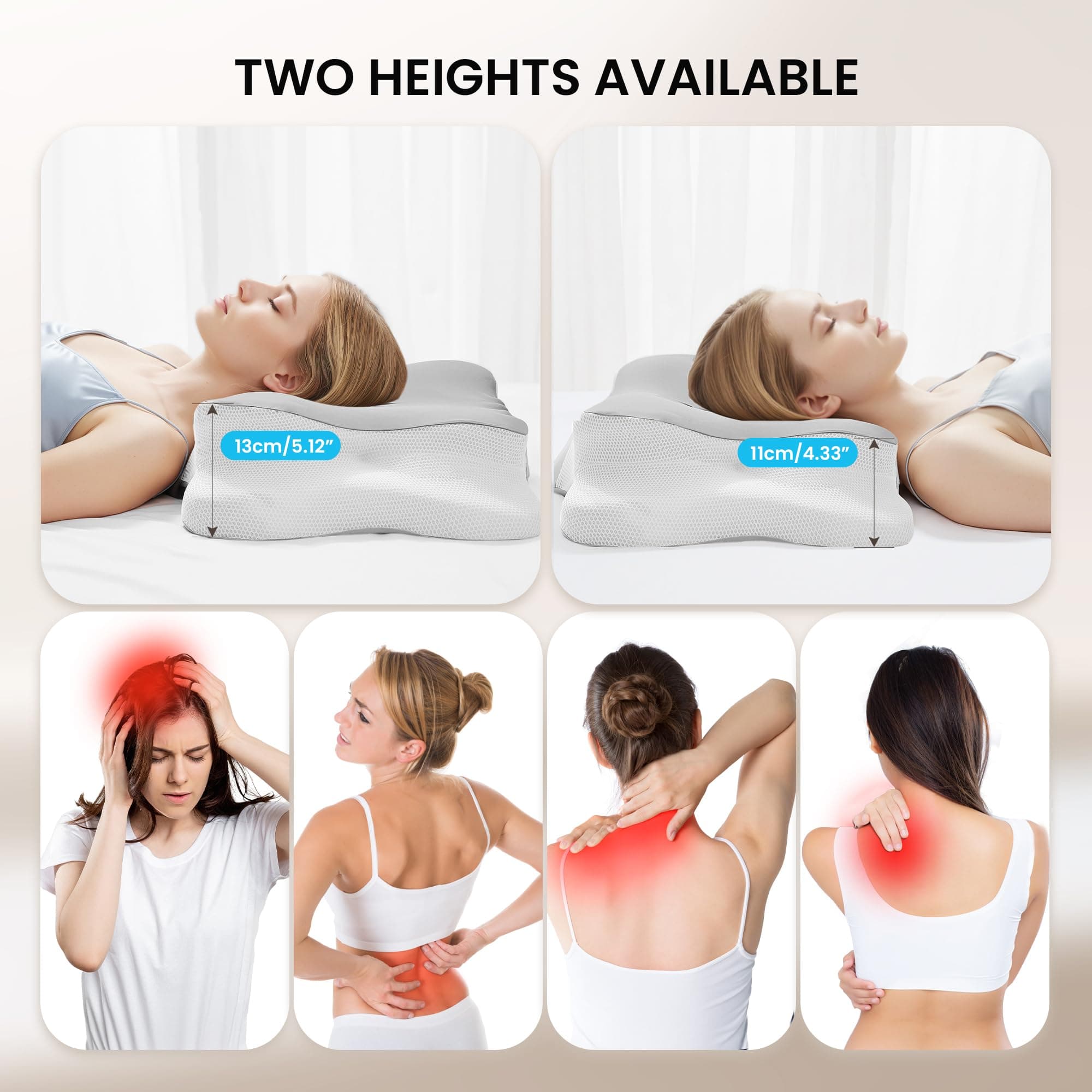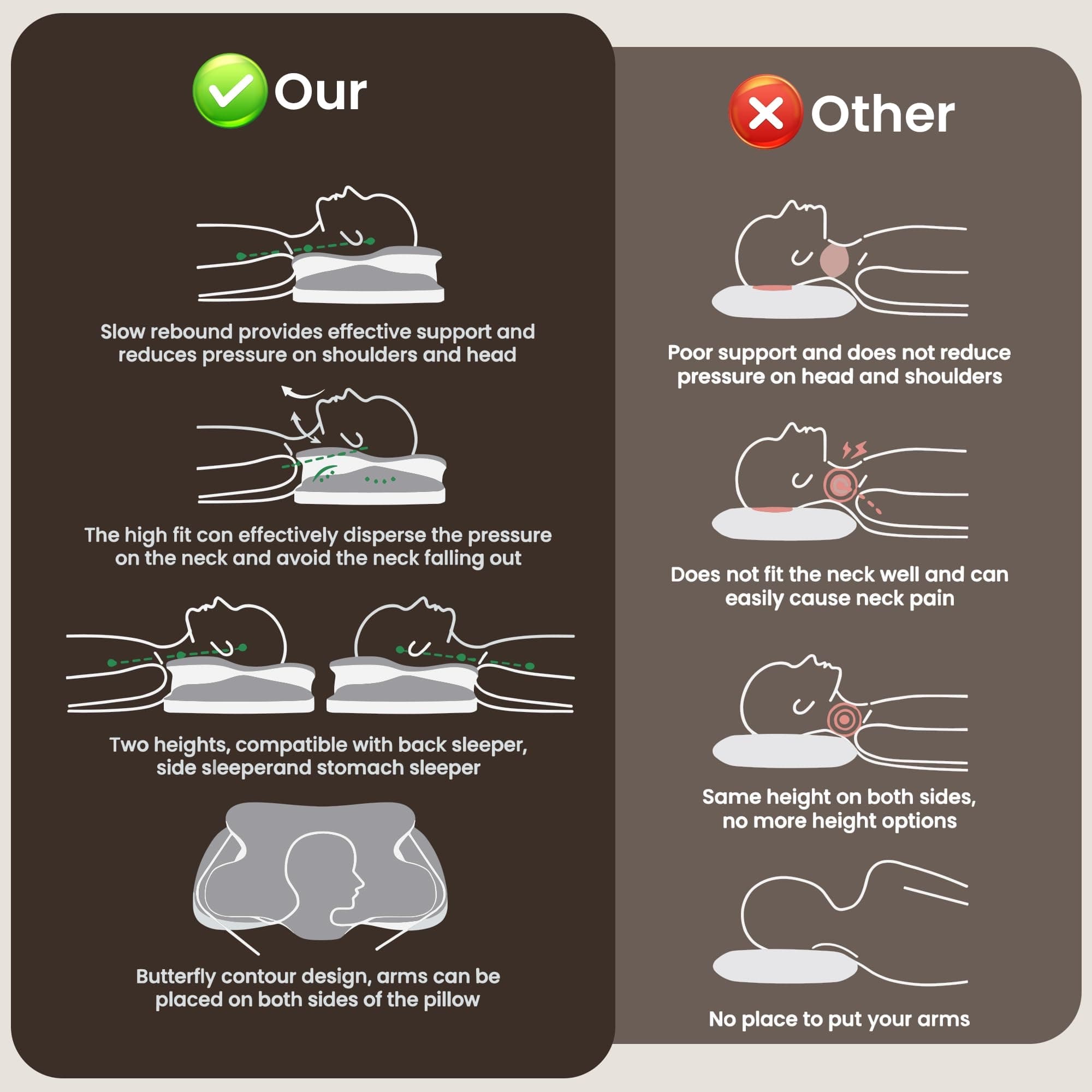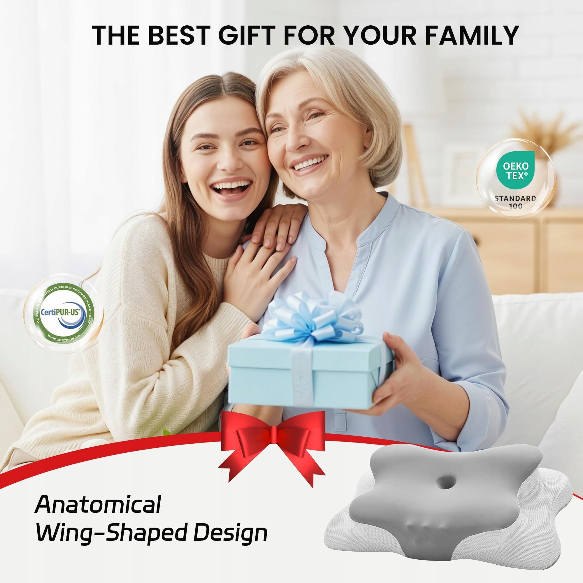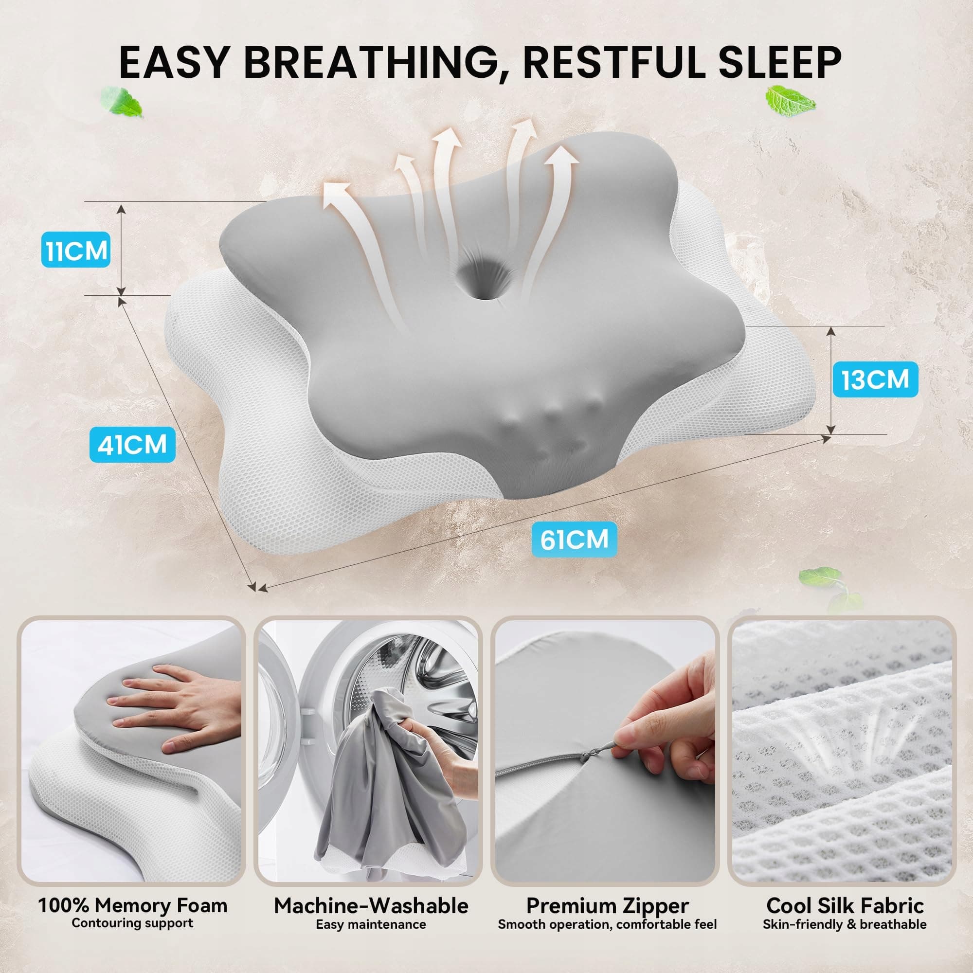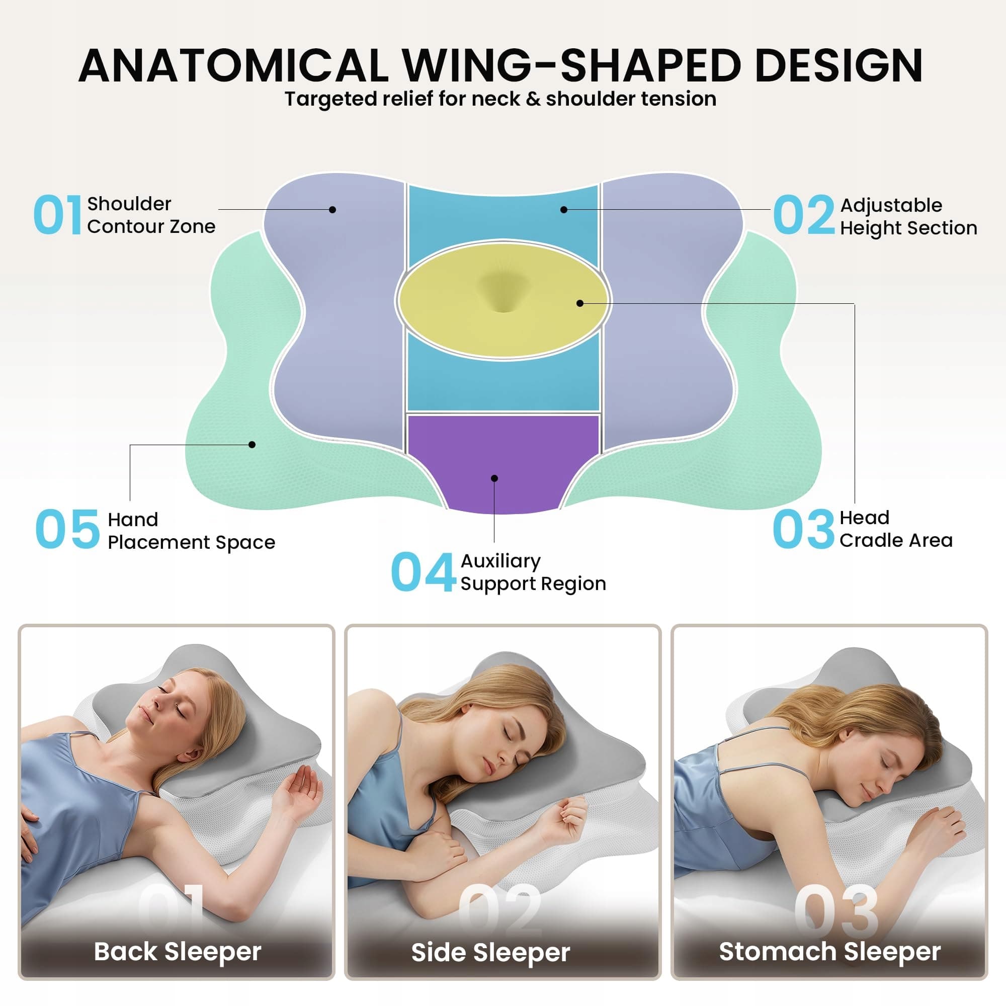 🦋 OPTYMALNE WSPARCIE DLA SZYI I GŁOWY: Nasza ergonomiczna poduszka dzięki unikalnemu kształtowi motyla i 5 strefom zapewnia idealne wsparcie. Utrzymuje kręgosłup szyjny w prawidłowej pozycji, łagodzi napięcia i jest idealną poduszką na ból szyi oraz do regenerującego snu.