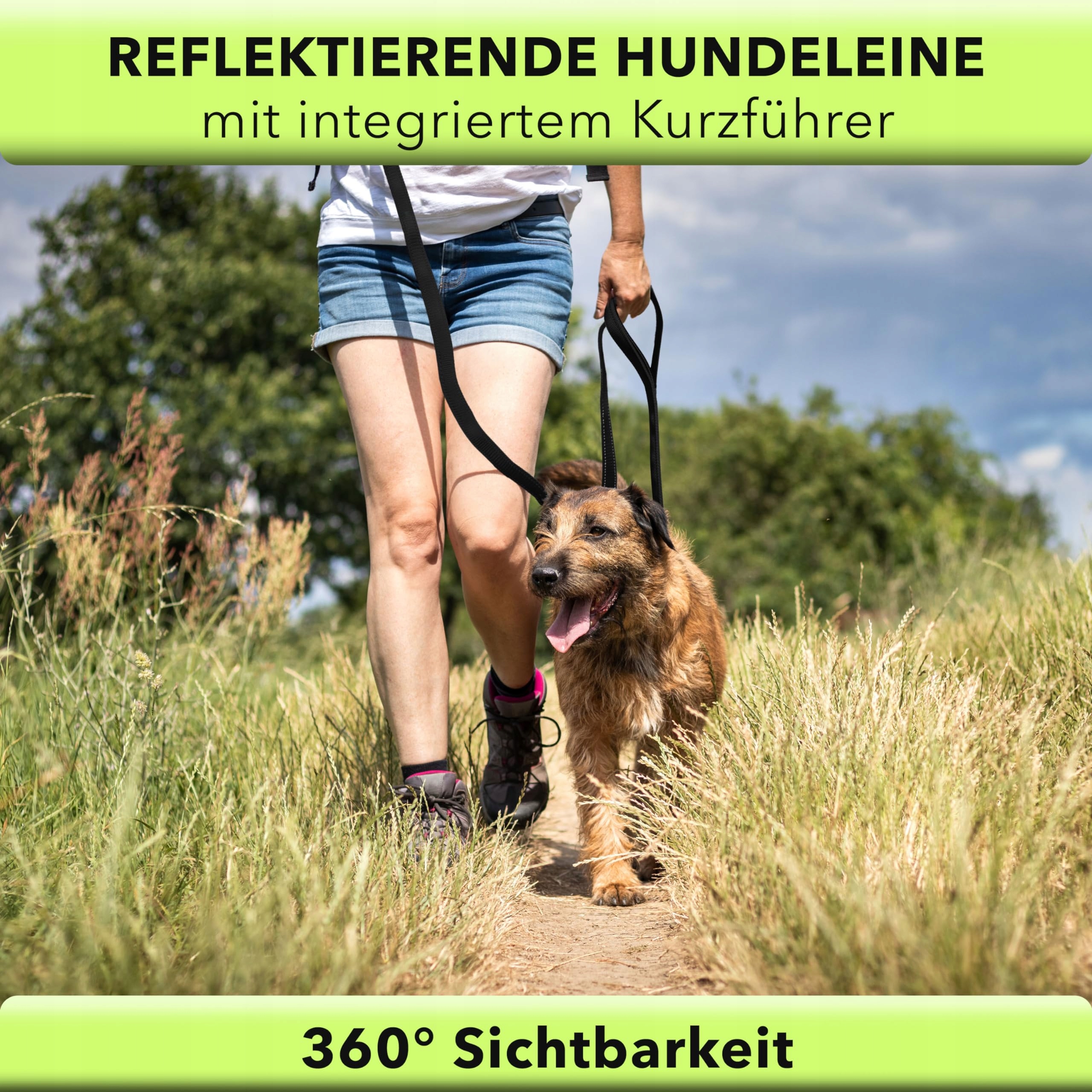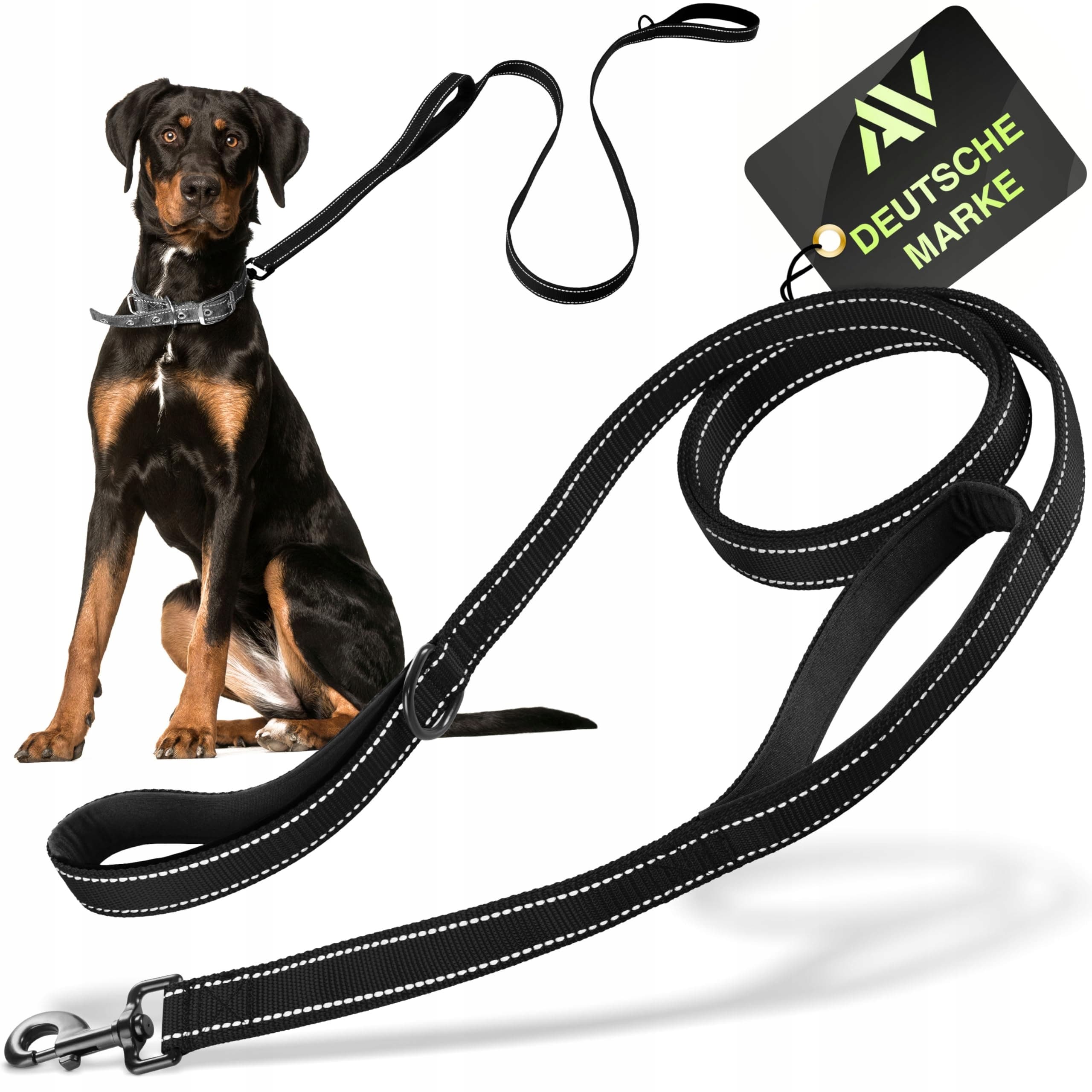 AVANA smycz dla psa z wbudowanym krótkim prowadzeniem, odblaskowa smycz, 2 uchwyty z miękką wyściółką, 1,5 metra smycz dla dużych i średnich psów - Czarna