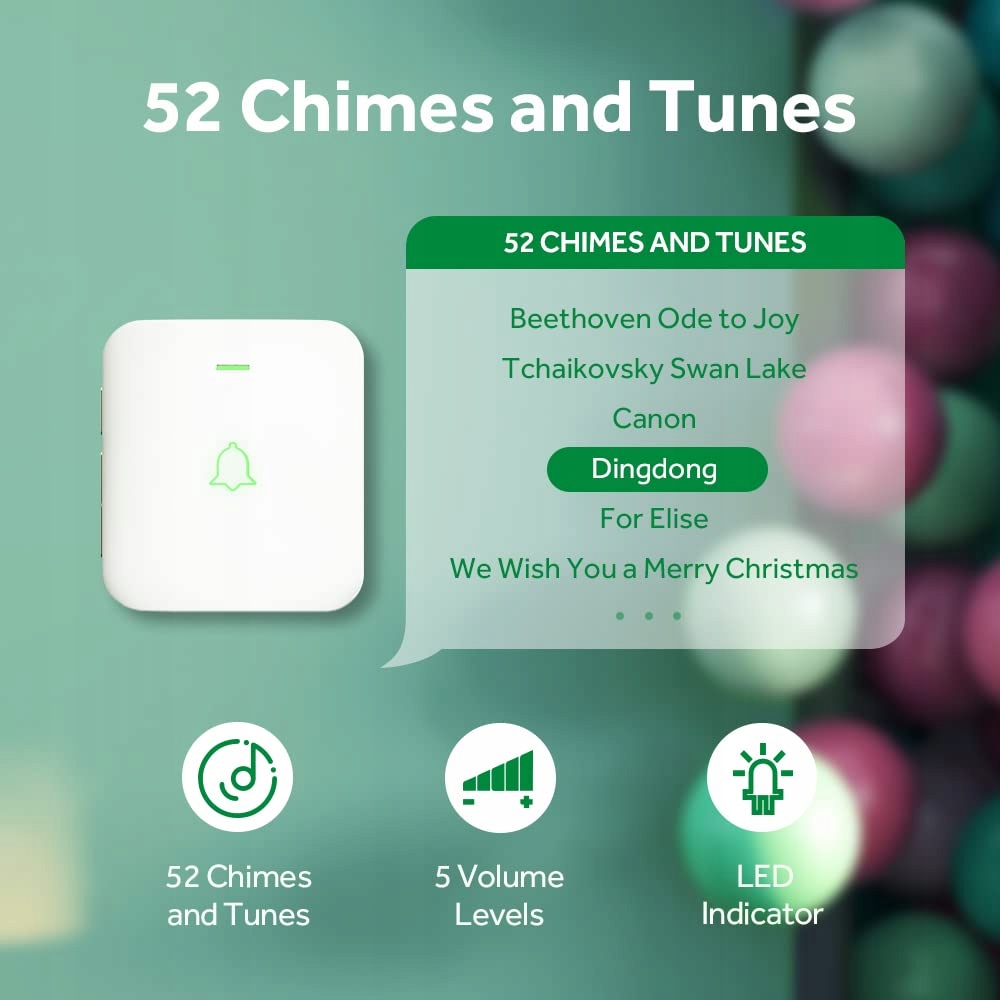 AVANTEK Bezprzewodowy Dzwonek Do Drzwi Biały 300M IP55 52 Melodie LED