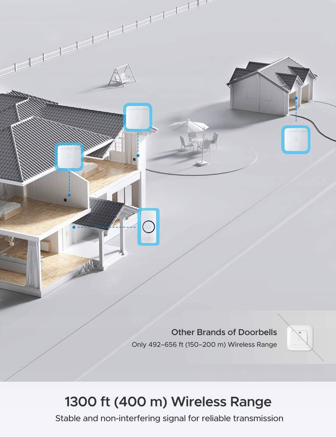 DUŻY ZASIĘG: Oferuje duży zasięg transmisji 400 m, zapewniając pełne pokrycie Twojego domu, bez zakłócania innych urządzeń.