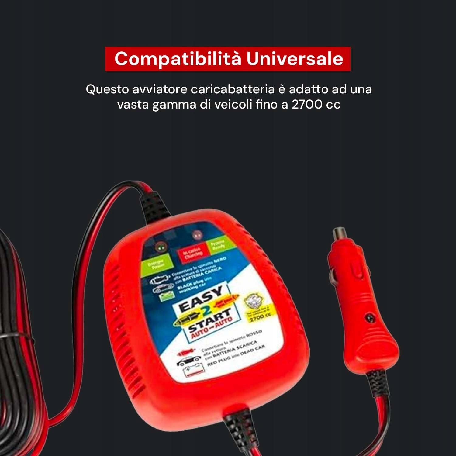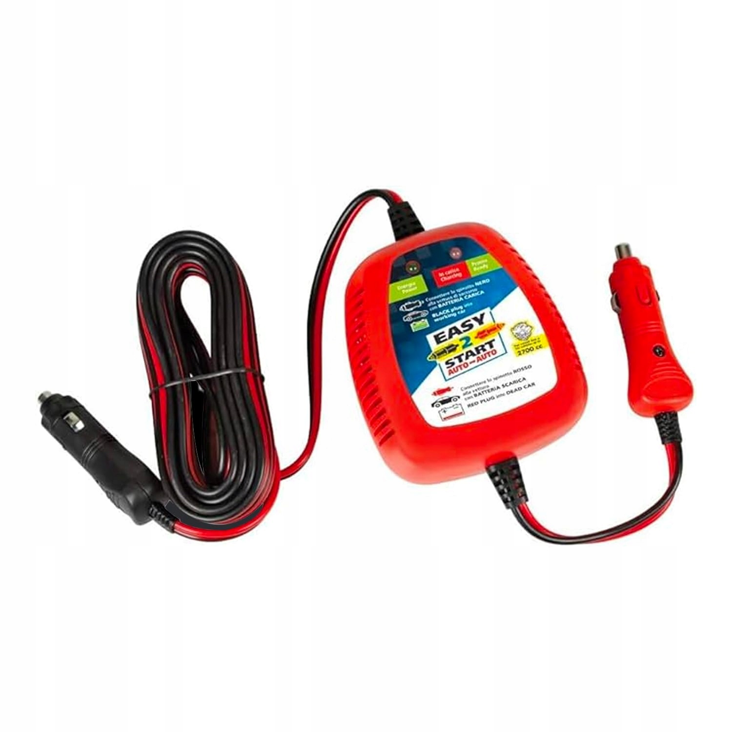 Uniwersalne urządzenie rozruchowe: Poradź sobie z każdą sytuacją awaryjną dzięki naszemu rozrusznikowi 12 V, zaprojektowanemu tak, aby zapewnić uniwersalną kompatybilność ze wszystkimi typami akumulatorów. Niezależnie od tego, czy prowadzisz samochód, motocykl czy pojazd do 2700 cc, to urządzenie niezawodnie uruchomi Twój akumulator przez podłączenie do zapalniczki samochodowej i dzięki 5-metrowemu kablowi zapewnia bezpieczne i wygodne połączenie. Wyposażone w zaawansowane funkcje bezpieczeństwa, takie jak ochrona przed przeładowaniem i zwarciem, jest niezbędnym akcesorium, które gwarantuje Ci bezpieczeństwo podczas każdej jazdy i chroni Ciebie oraz Twój pojazd.