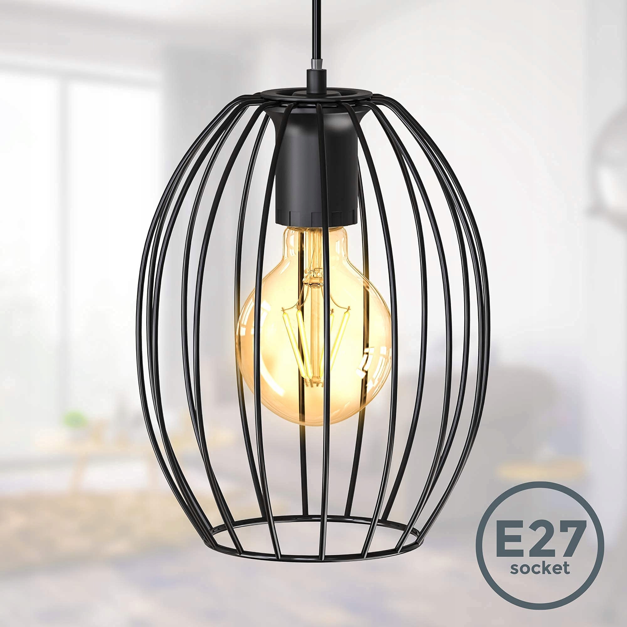 B.K.Licht - Lampa wisząca z oprawą E27, max. 60 Watt, vintage, lampa wisząca, lampa nad stół jadalny, lampa do jadalni, lampa wisząca do salonu, lampa do kuchni, retro, vintage, 17,5x115 cm, czarna