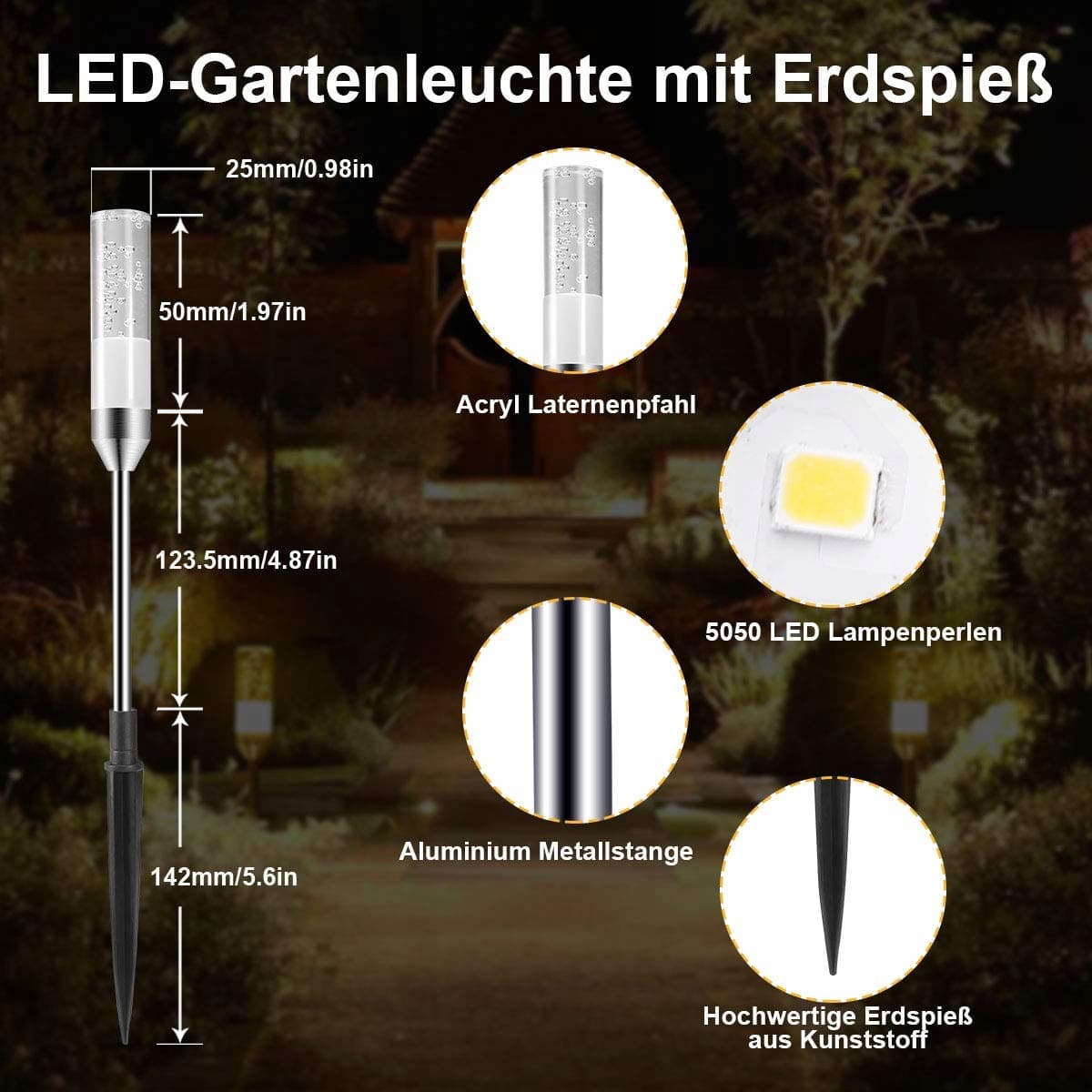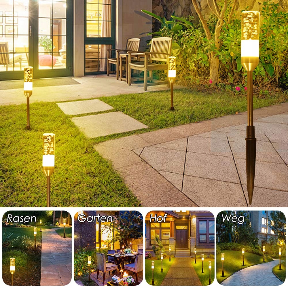 【Oświetlenie ścieżek na zewnątrz z lepszymi diodami LED】 Zestaw 6 lamp ogrodowych zasilanych prądem, 2700K, łącznie 570LM/4,8W, wysokiej jakości diody LED B-right są stabilniejsze i jaśniejsze niż standardowe diody LED. Nowoczesny design lampy krajobrazowej z efektem bąbelków może służyć jako dekoracja lub oświetlenie nocne, jest idealny do użytku na zewnątrz, takich jak balkony, podwórka, trawniki, ulice, ogrody.