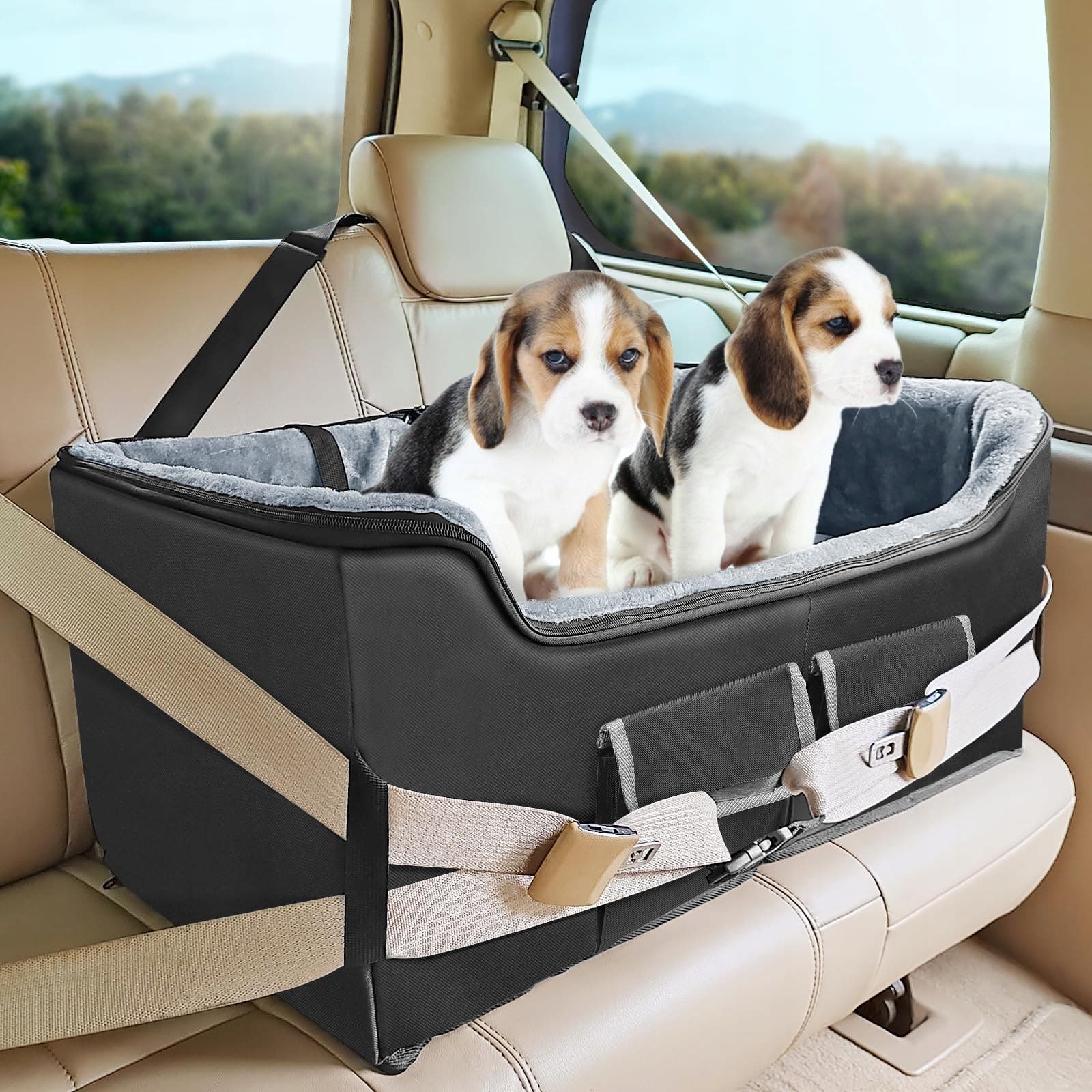 BABENEST Stabilny Samochodowy Kosz Dla Psów XL Z Pasy Bezpieczeństwa Składany i Pralny