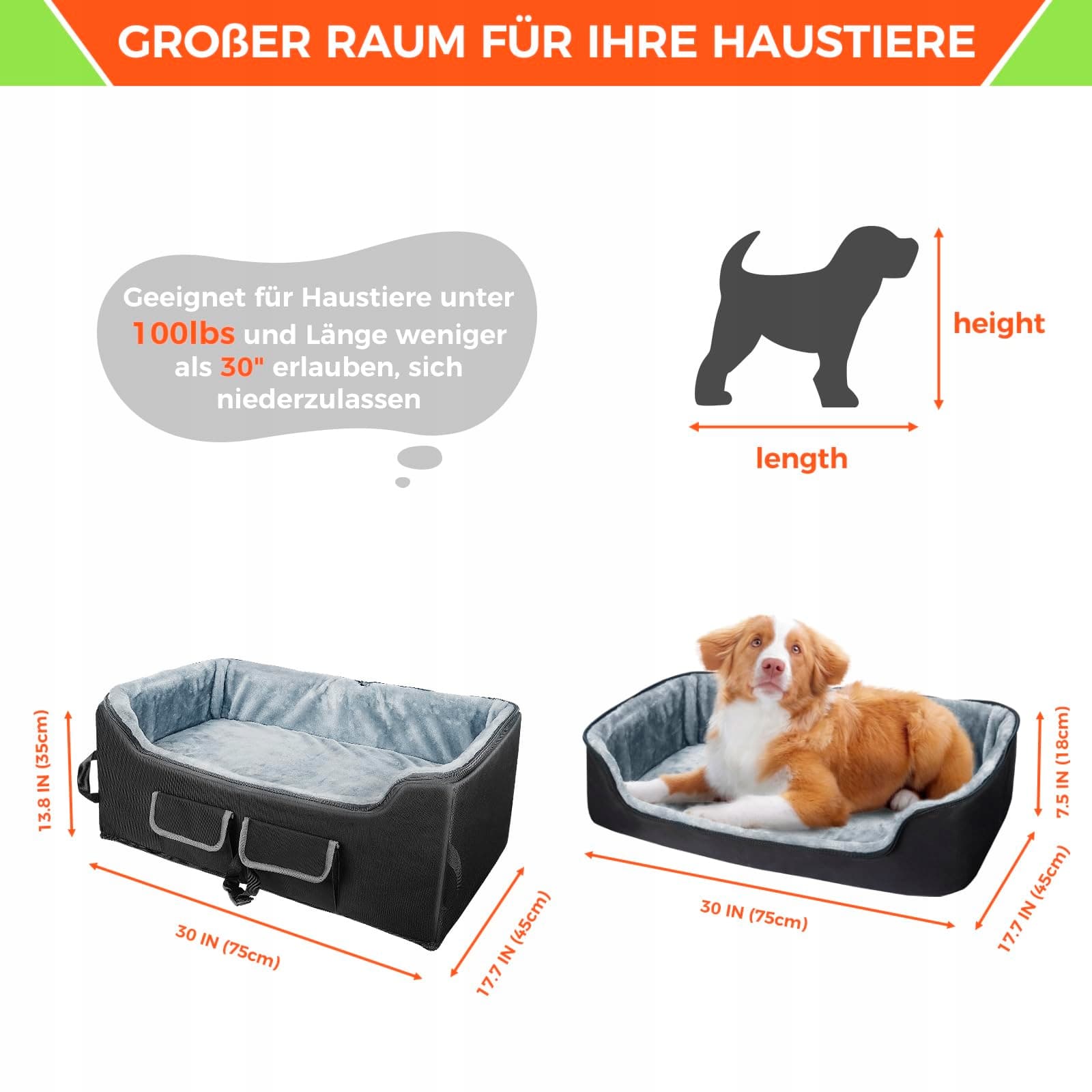 🐾[Odpowiedni rozmiar]Nasz fotelik dla psa jest odpowiedni dla małych i średnich zwierząt domowych, które ważą mniej niż 60 lb i mają wymiary 76 x 43 x 33 cm. Proszę zmierzyć swoje zwierzę przed zakupem. Podstawa jest o 15 cm wyższa niż standardowy fotelik dla psa, dzięki czemu Twoje zwierzę ma dobrą widoczność i jednocześnie więcej miejsca do przechowywania. Użyj tego, aby przechowywać zwierzęta lub przedmioty osobiste.