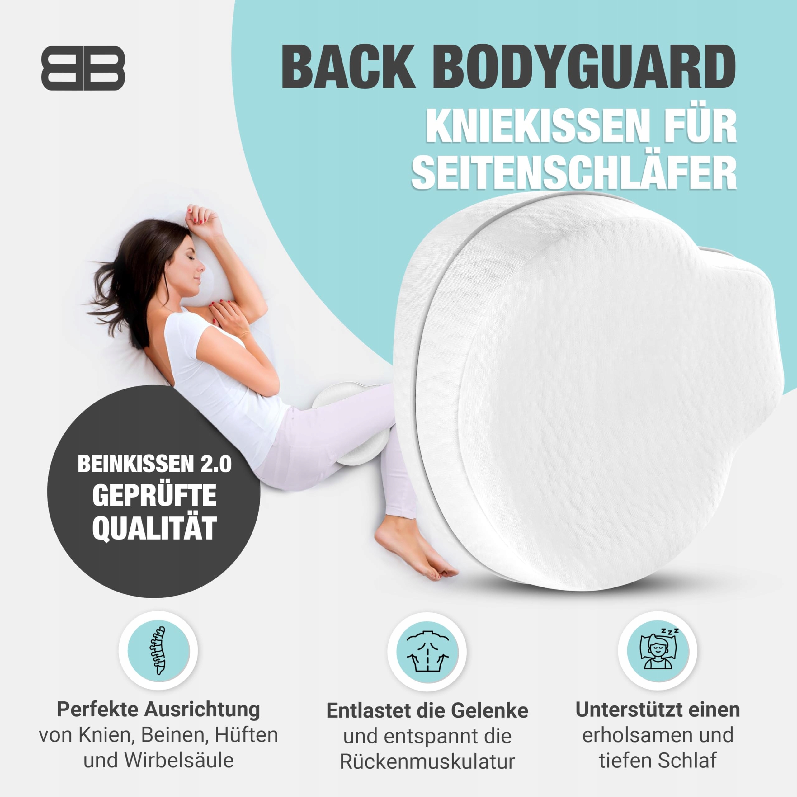 BACK BODYGUARD Poduszka na kolana dla śpiących na boku - Poduszka na nogi - Poduszka dla śpiących na boku z pokrowcem - Poduszka do ułożenia dla dorosłych - Poduszka na nogi - Poduszka na kolana dla śpiących na boku - Rolka na kolana (poduszka + biały pokrowiec)