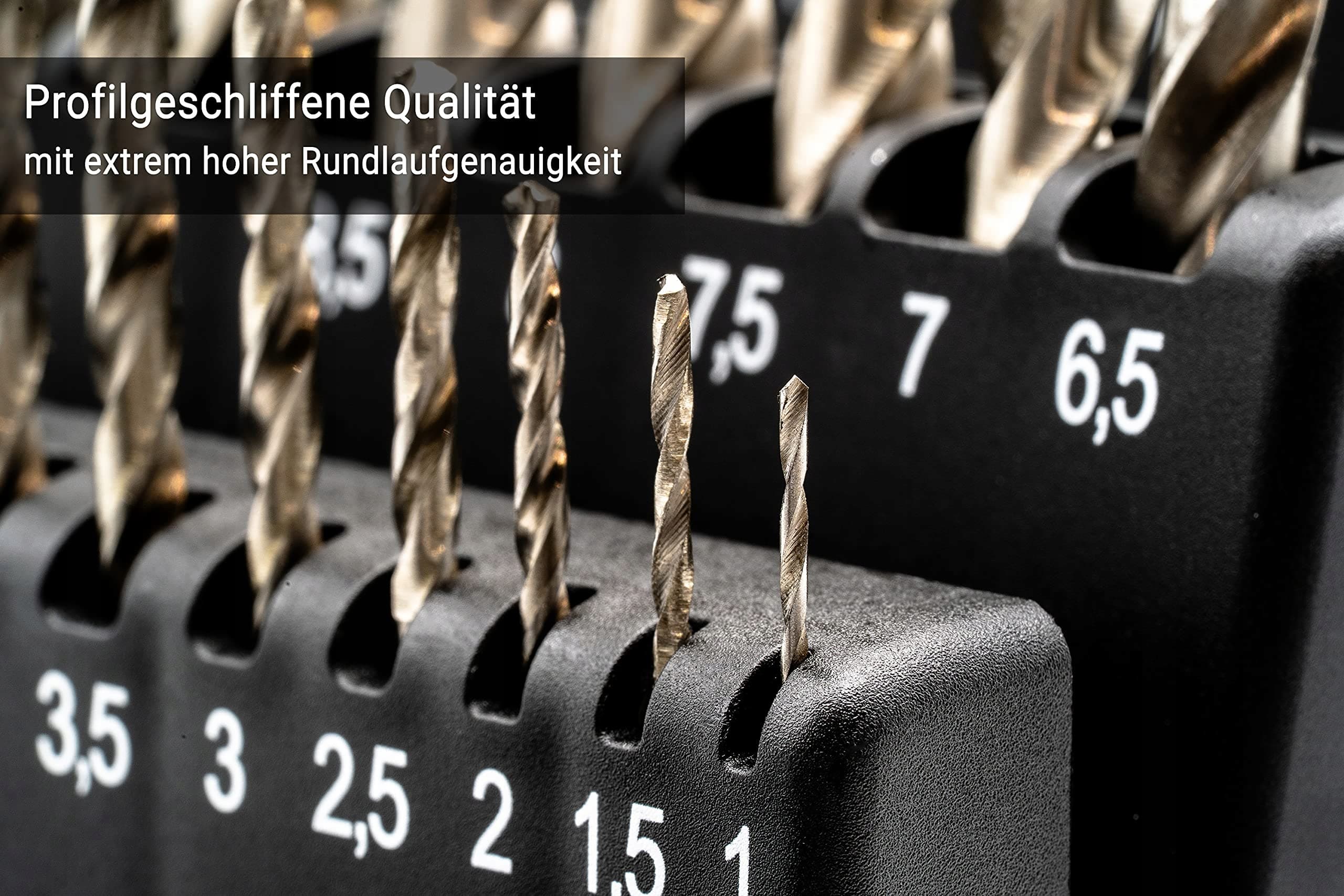 ZAWARTOŚĆ DOSTAWY - 25-częściowy zestaw wierteł - zestaw wierteł HSSG (0,5 mm wzrastające) 1 - 13 mm - DIN 338 - wiertła spiralne HSS w wytrzymałej skrzynce