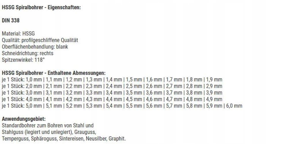 CECHY - Wykonane zgodnie z DIN 338 z materiału HSSG, nasze narzędzia oferują jakość szlifowaną profilowo, gładką powierzchnię, prawą kierunek cięcia oraz kąt wierzchołkowy 118° – dla precyzyjnych wyników.