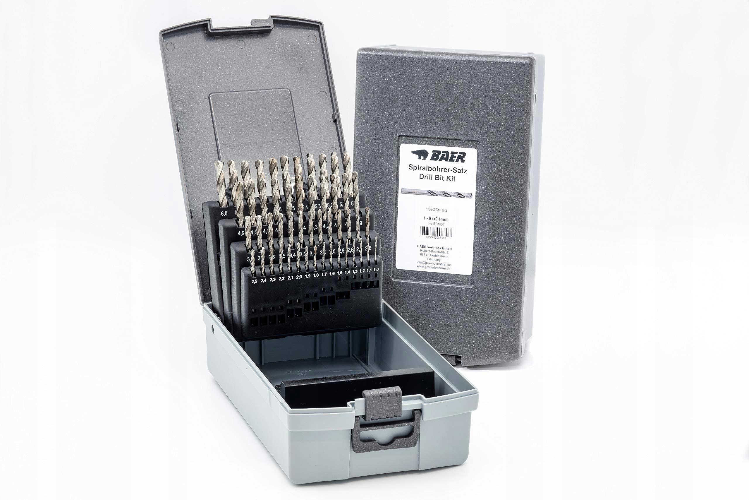 Zestaw wierteł spiralnych BAER Coils BAER, (0,1 mm wzrastające) 1-6 mm, HSSG, DIN 338, zestaw wierteł spiralnych, zestaw wierteł stalowych, wiertła stalowe, wiertła spiralne