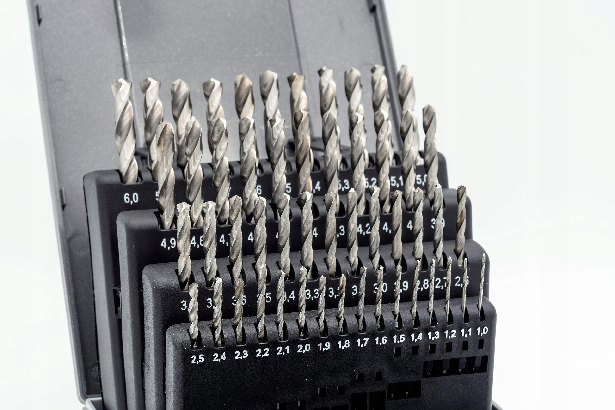 ZAWARTOŚĆ ZESTAWU - Zestaw zawiera 51 wysokiej jakości wierteł spiralnych HSSG o wymiarach od 1 do 6 mm w krokach co 0,1 mm. Wykonane zgodnie z DIN 338 i bezpiecznie zapakowane w wytrzymałe pudełko – idealne do precyzyjnej pracy i przejrzystego przechowywania.