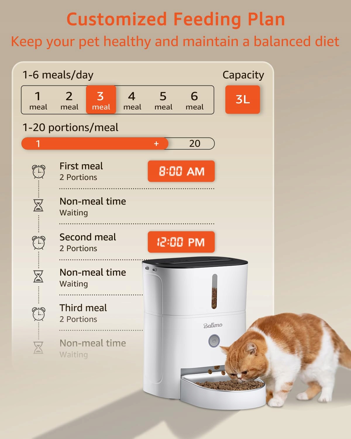 BALIMO Automatyczny Podajnik Karmy 3L Z Nocnym Światłem Dla Kotów i Psów