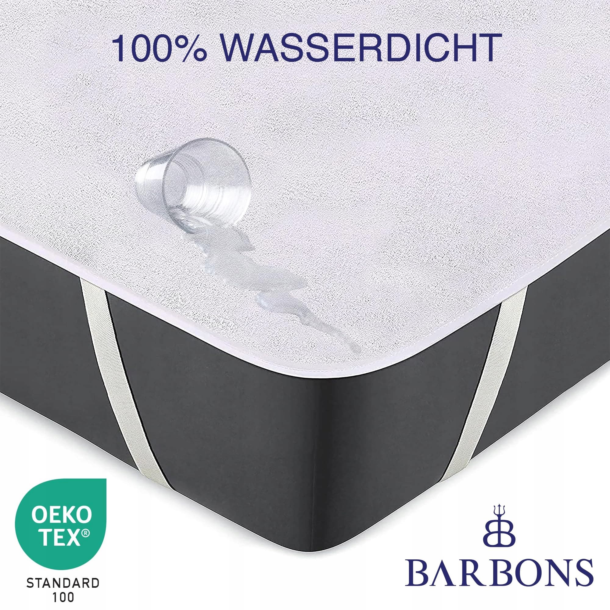 CERTYFIKOWANA JAKOŚĆ: Ochraniacz na materac BARBONS jest certyfikowany przez OEKO-TEX i wolny od substancji szkodliwych. Osoby starsze, dzieci i kobiety w ciąży mogą go zatem używać z pełnym zaufaniem. Dzięki miękkiej i przyjaznej dla skóry powierzchni z naturalnej bawełny oraz spodniej stronie z folii TPU, pokrowiec jest nie tylko w 100% wodoodporny, ale także oddychający.