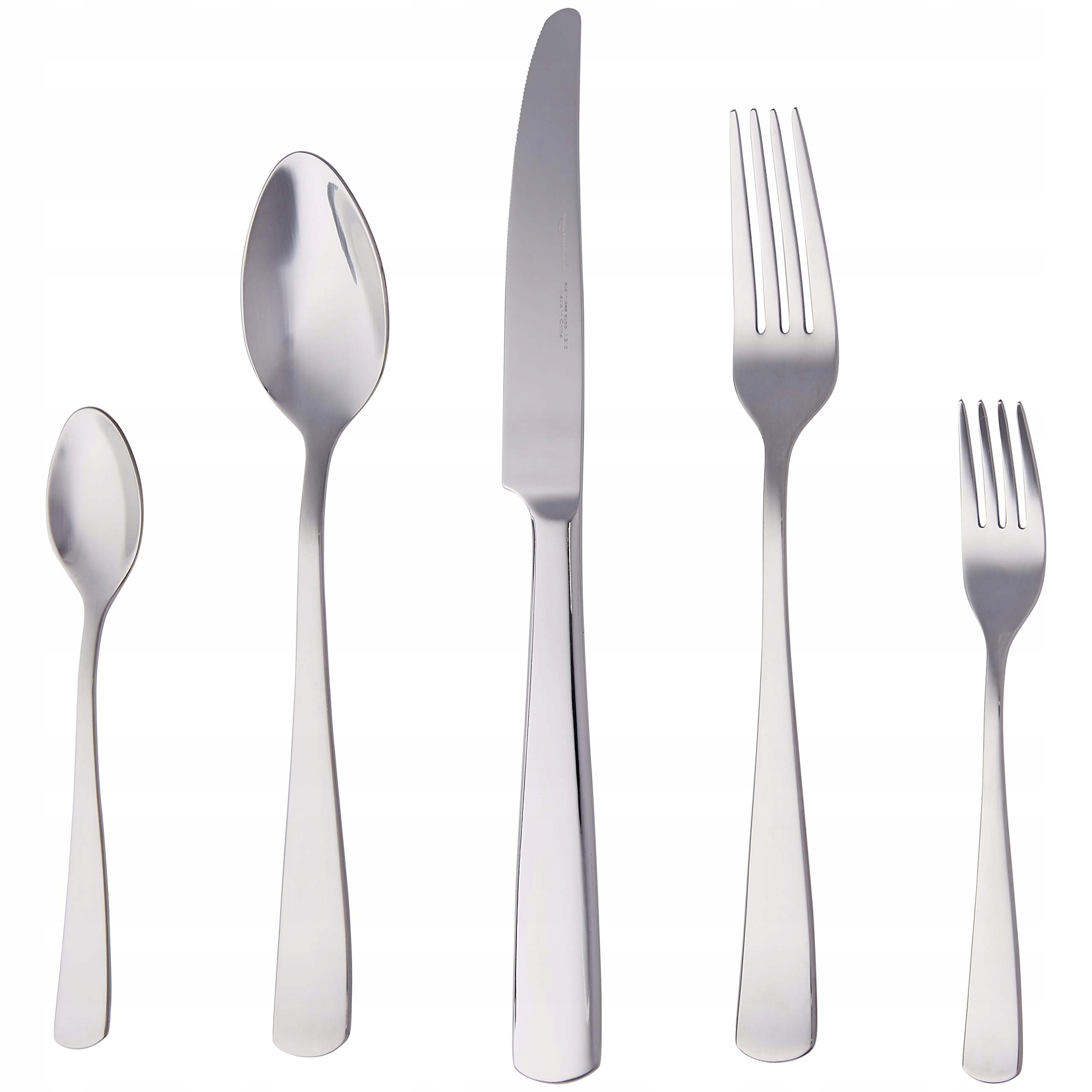 Amazon Basics - Zestaw sztućców z prostokątnym brzegiem, stal nierdzewna, 20 sztuk, dla 4 osób, w kolorze srebrnym