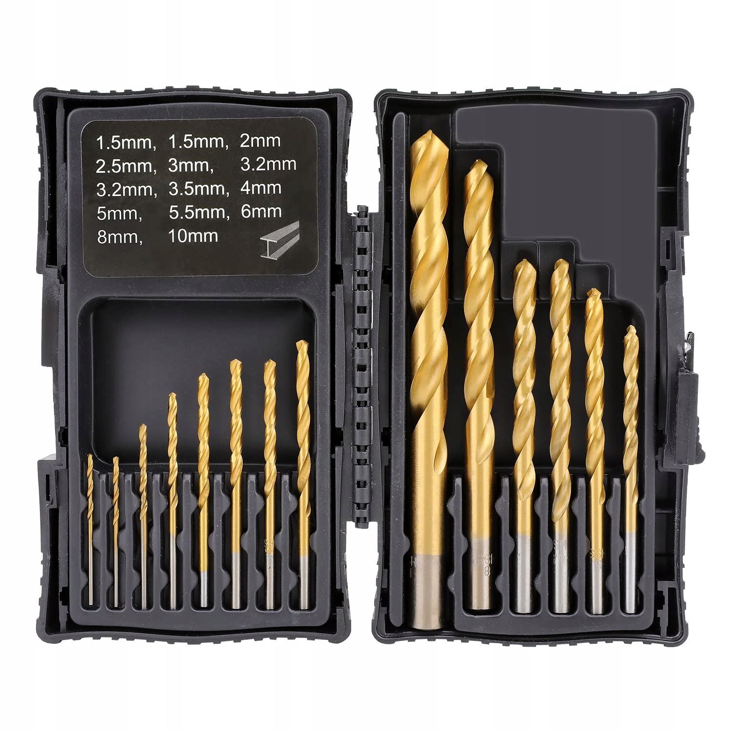 Zawiera następujące rozmiary: 1,5 mm, 1,5 mm, 2 mm, 2,5 mm, 3 mm, 3,2 mm, 3,2 mm, 3,5 mm, 4 mm, 5 mm, 5,5 mm, 6 mm, 8 mm, 10 mm