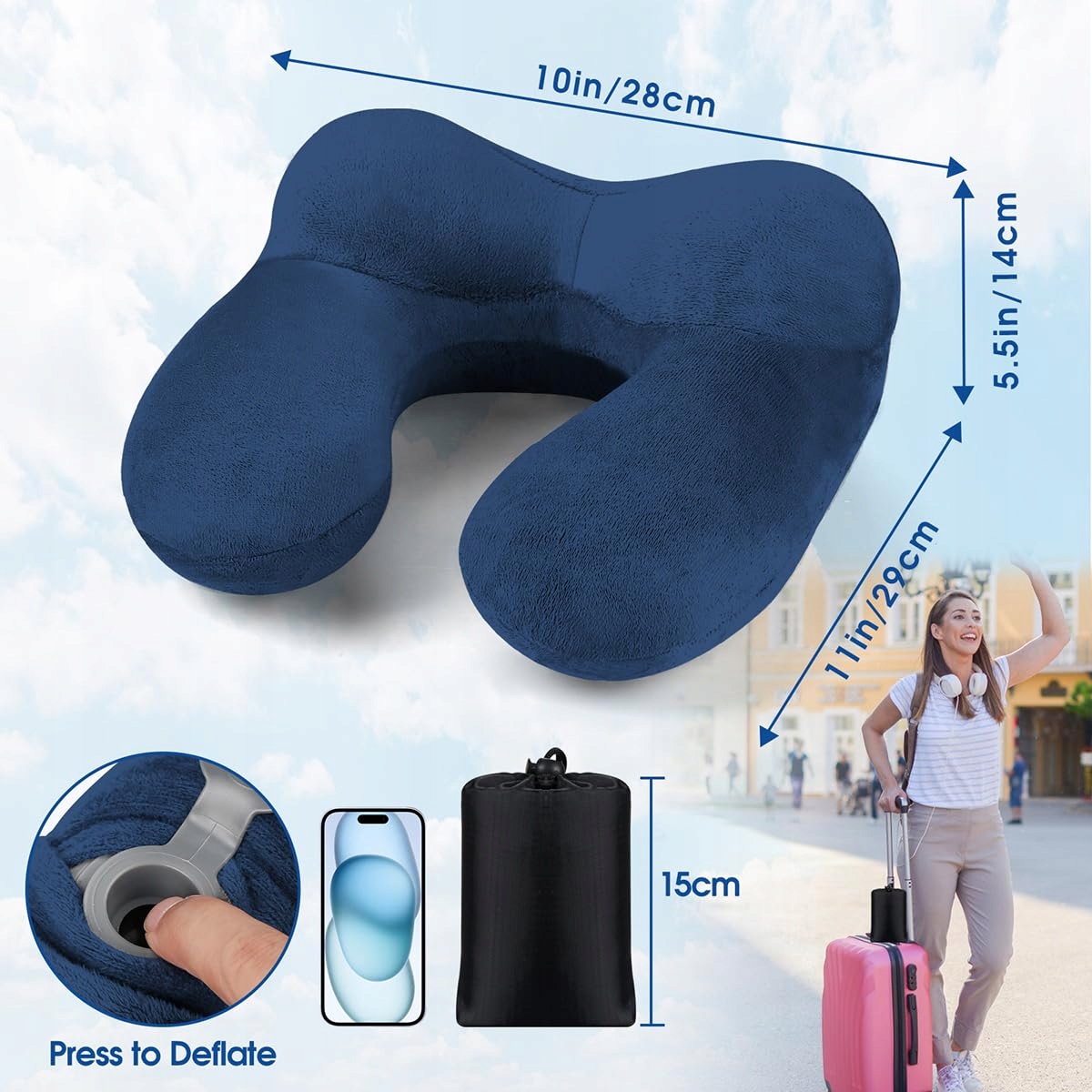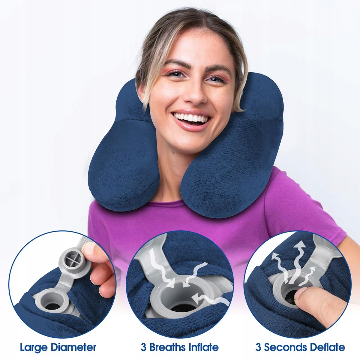 BBjinronjy Poduszka podróżna, Poduszka na szyję z funkcją dmuchania do samolotu z zatyczkami do uszu, Miękki welur Ergonomiczna poduszka podróżna dmuchana do biura, samolotu, samochodu, podróży, kempingu, poduszka do snu (Niebieska)