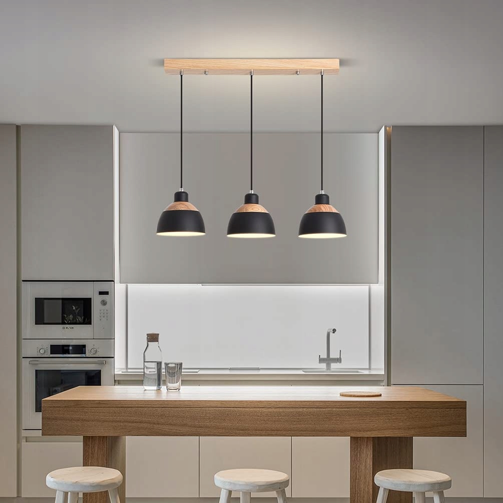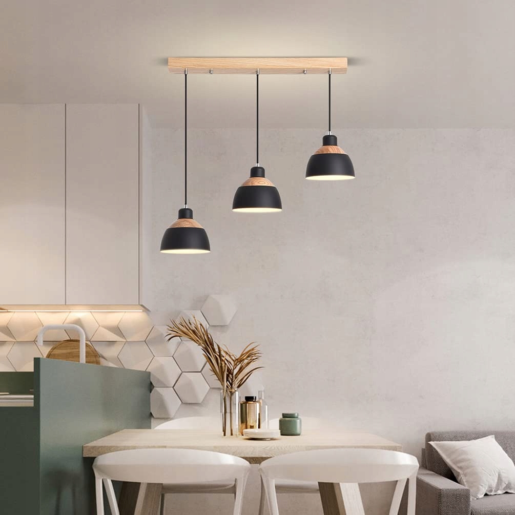 Beasiu-Eletro Retro Drewniana Lampa Wisząca 3-Płomienna Lampa Stołowa Czarna Metalowa Lampa Wisząca Przemysłowa Regulowana Wysokość Lampa Wisząca do Jadalni Kuchni Kawiarni Lady Wewnętrznej Biura Lampa Wisząca, E27