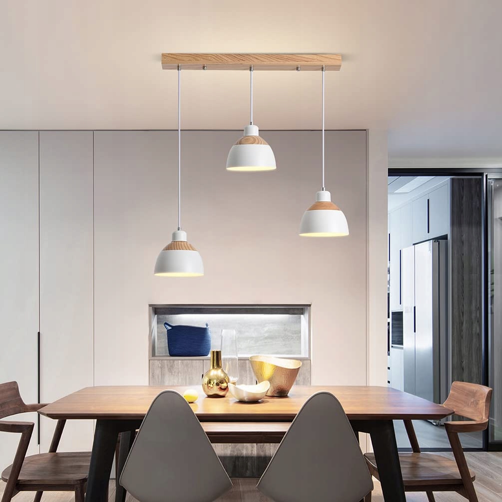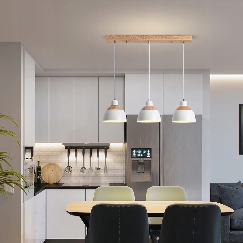 Beasiu-Eletro Retro Drewniana Lampa Wisząca 3-Płomienna Lampa Stołowa Biała Metalowa Lampa Wisząca Przemysłowa Regulowana Wysokość Lampa Wisząca do Jadalni Kuchni Kawiarni Lady Wewnętrznej Biura Lampa Wisząca, E27