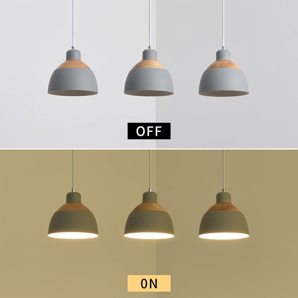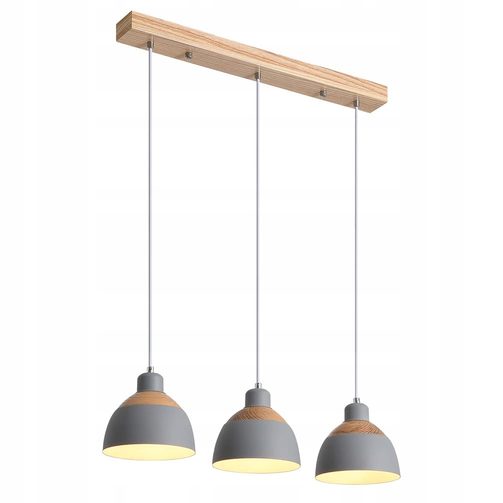 BEASIU-ELETRO Vintage Hanging Lamp Wood Metal Gray E27 3-Bulbs Adjustable