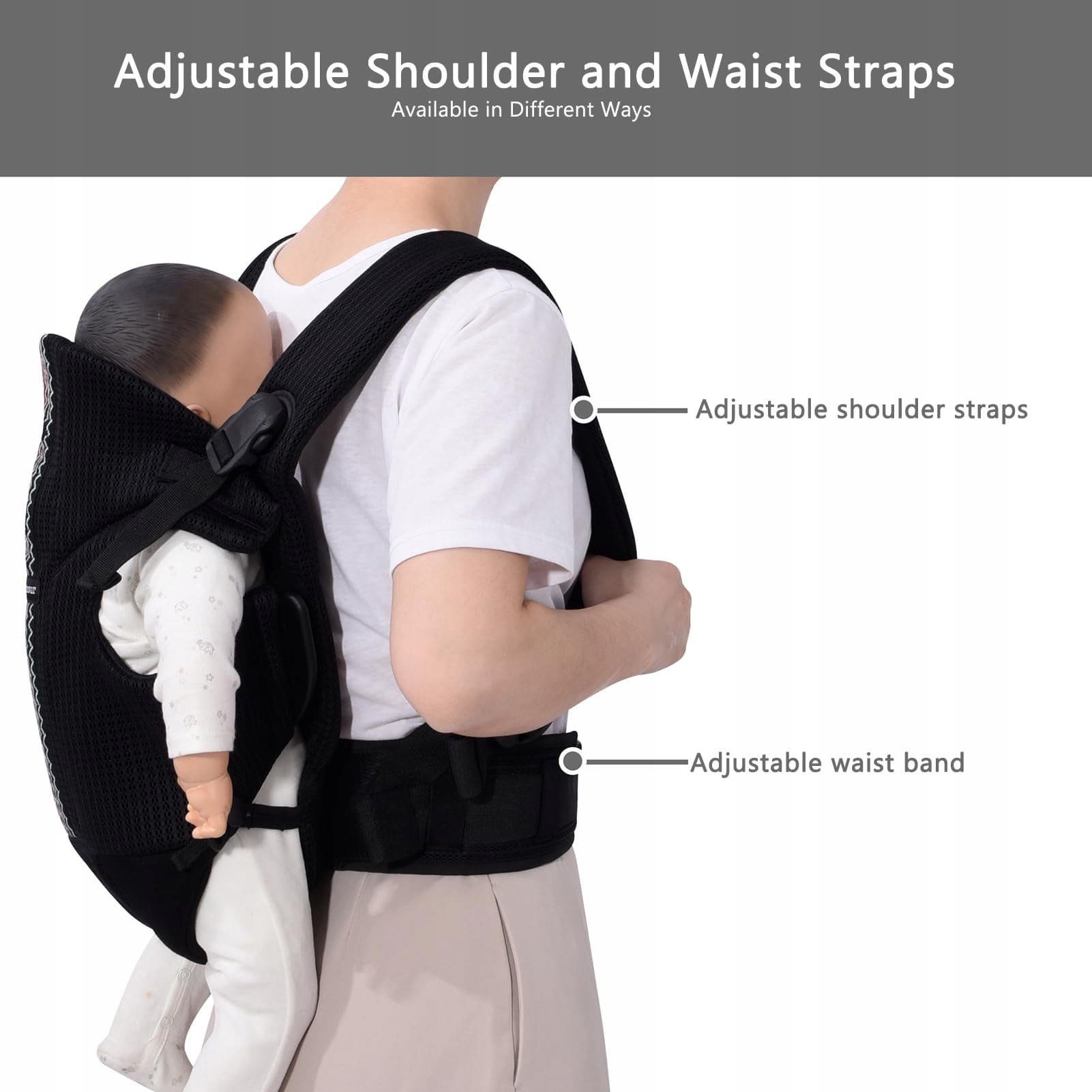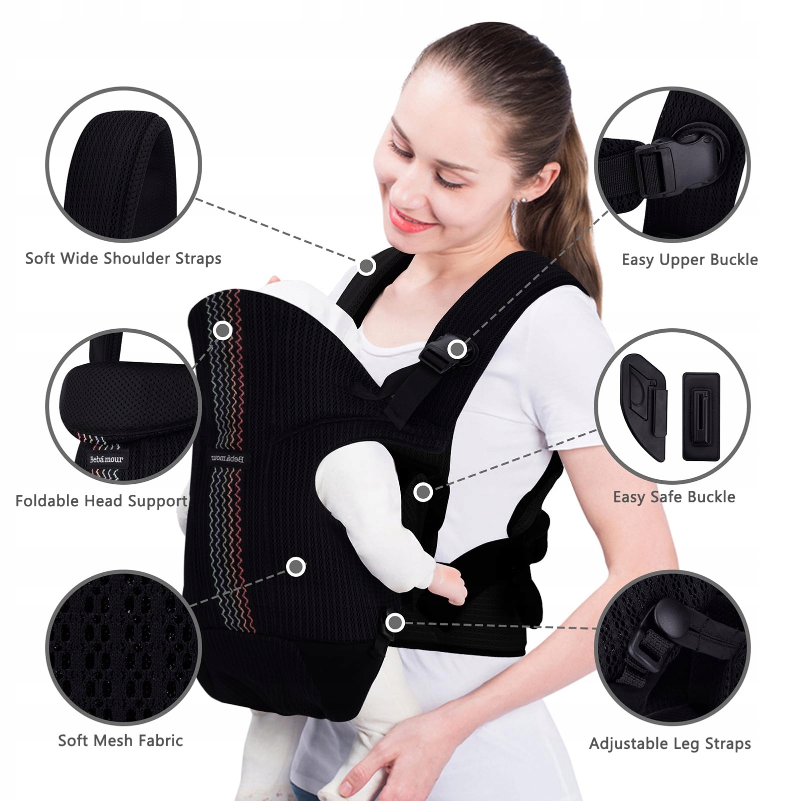 BEBAMOUR Regulowane Nosidełko Ergonomiczne Dla Noworodków 3-36 Msc Czarne