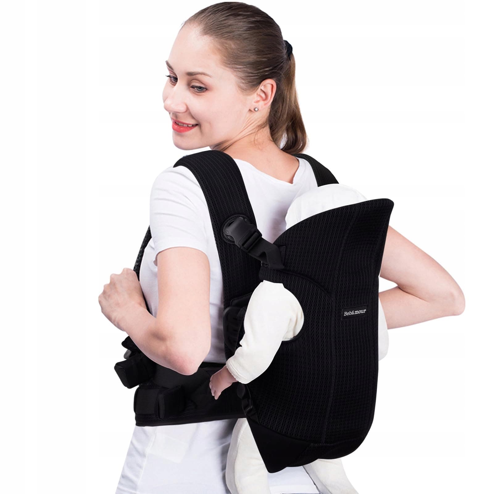 BEBAMOUR REGULOWANE NOSIDEŁKO ERGONOMICZNE DLA NOWORODKÓW 3-36 MSC CZERŃ