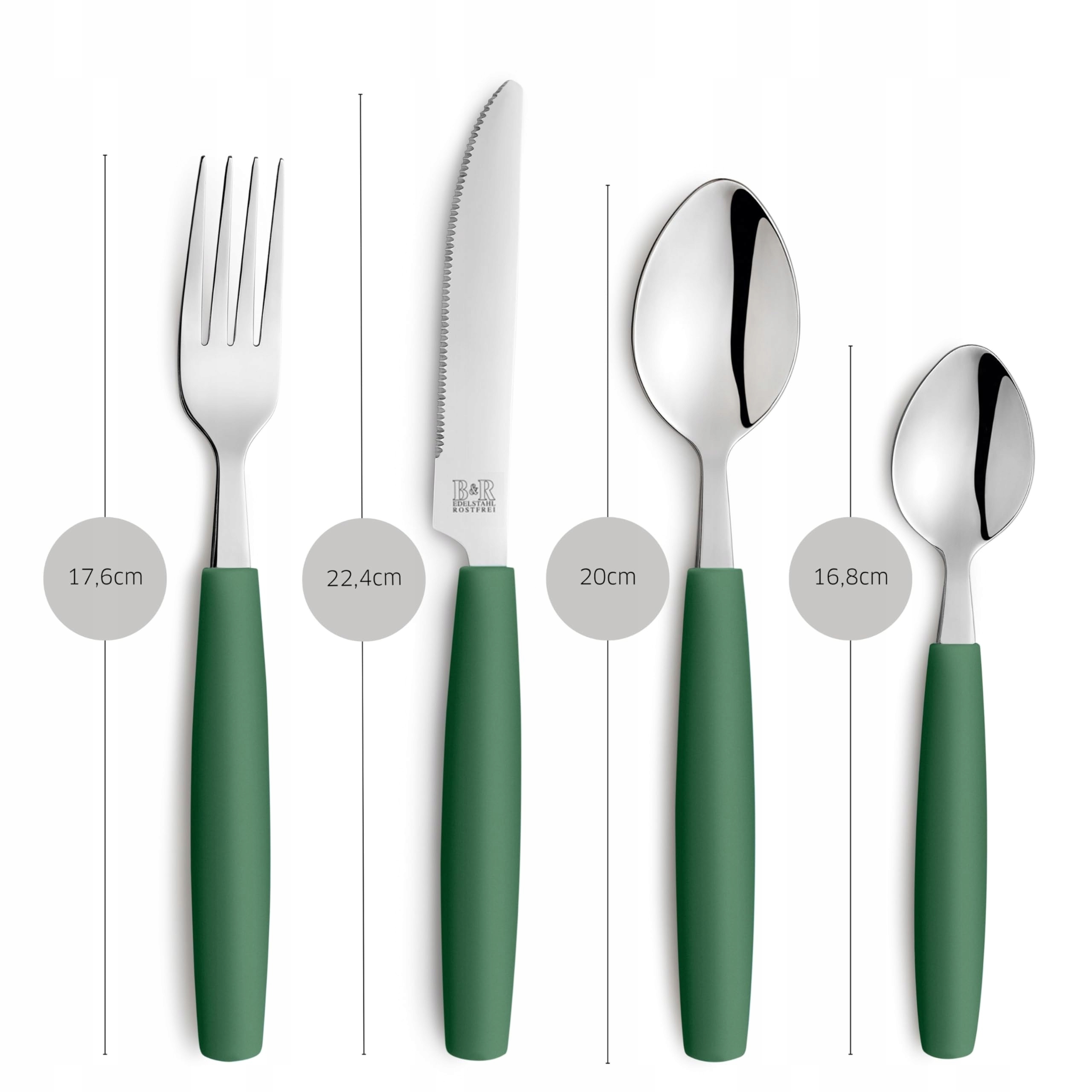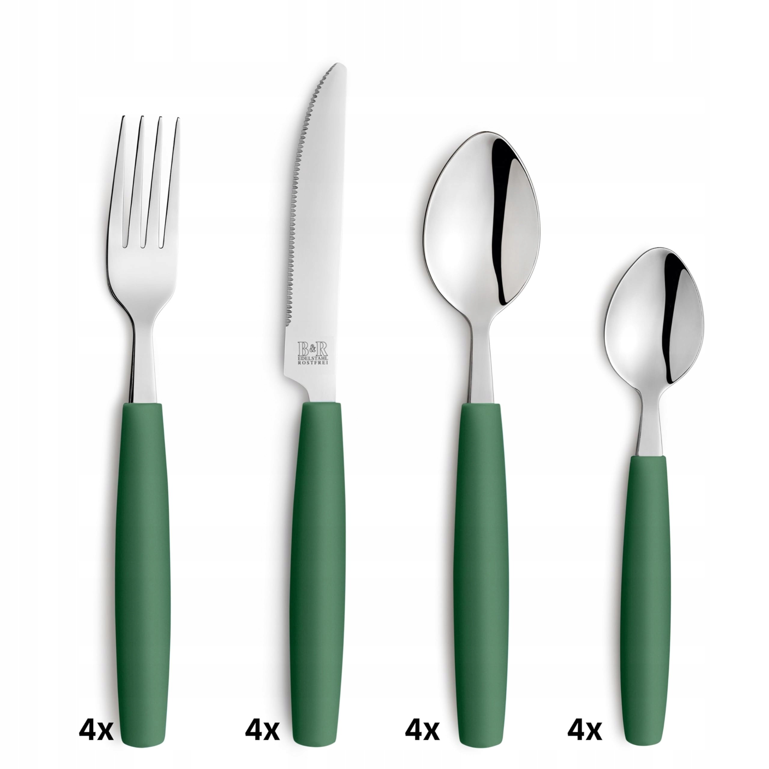 Beckmann & Rommerskirchen VALOA Zestaw sztućców dla 4 osób - 16 elementów - Ciemnozielony - Nadaje się do zmywarki - Wysoki połysk - Sztućce: 4x nóż, widelec, łyżka stołowa, łyżeczka do kawy
