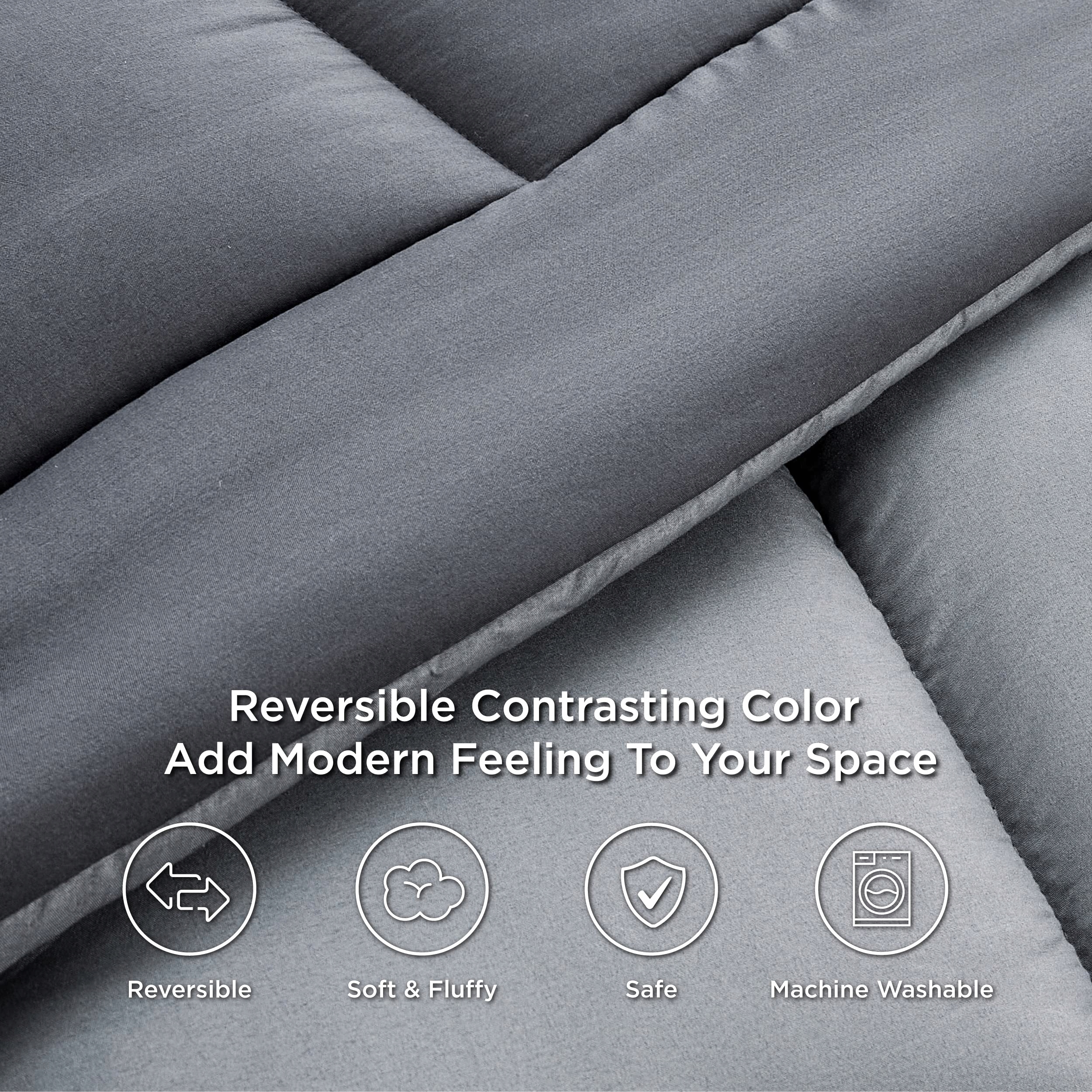 Nowoczesny wygląd: Kołdra jest zaprojektowana w kontrastujących kolorach, z różnymi kolorami po każdej stronie, co daje wyrafinowany i nowoczesny minimalistyczny wygląd, nadając Twojemu pokojowi elegancki i romantyczny nastrój.