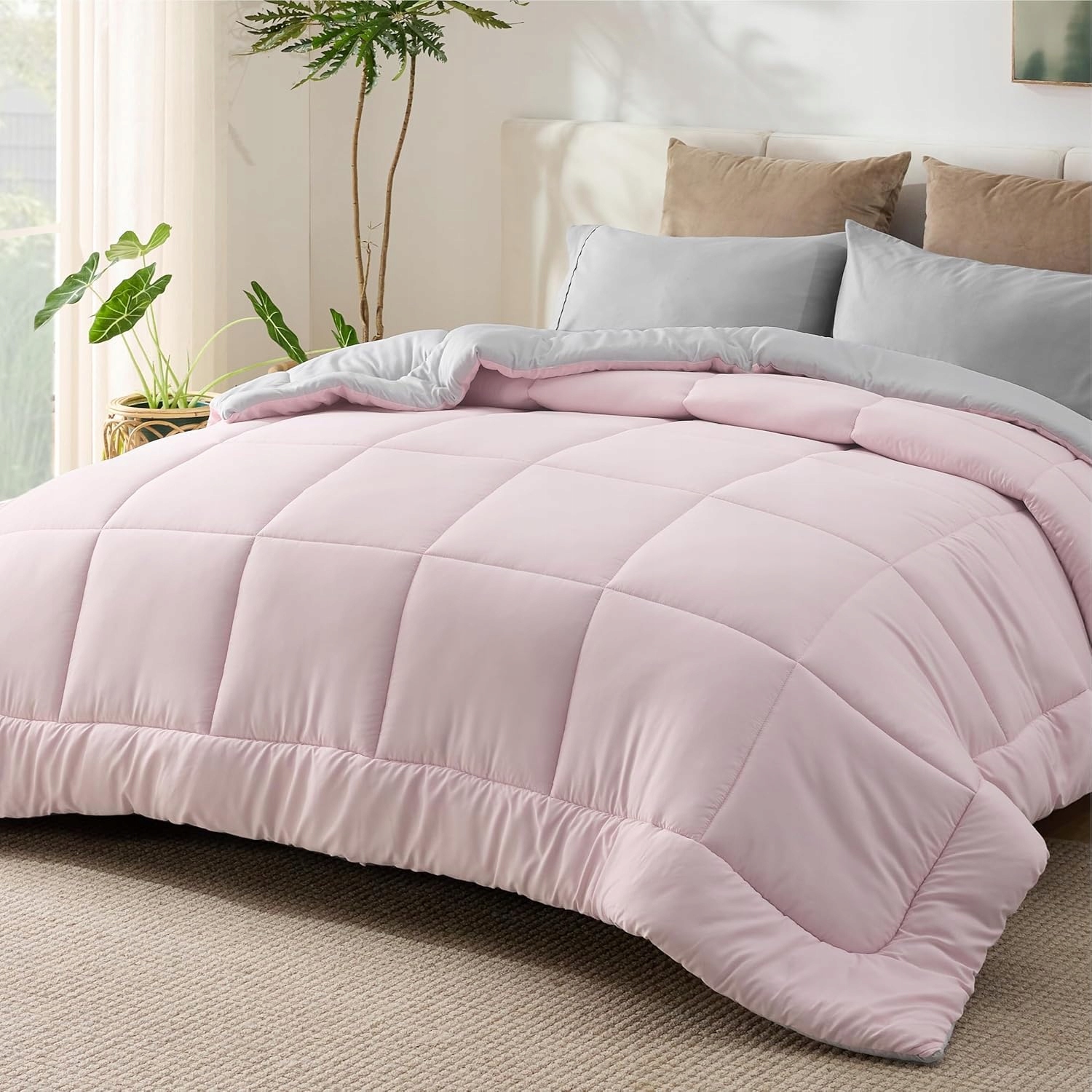 BEDSURE Kołdra 240x220 Kołdra całoroczna Dwustronna Pikowana - Certyfikat Oeko-TEX 300 GSM Kołdra na 4 pory roku 240x220cm Różowo/Szara, Miękka 100% Poliestrowa Kołdra dla Alergików