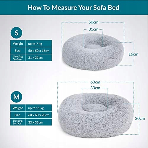 Dostarczamy puszyste łóżka dla kotów w średnim rozmiarze (60 × 60 × 20 cm) dla zwierząt domowych poniżej 11 kg.