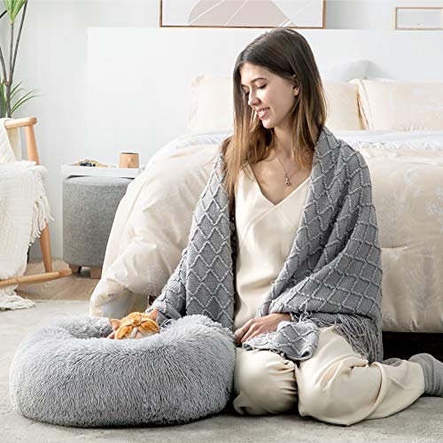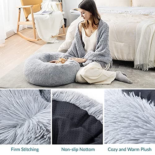 BEDSURE Legowisko Dla Kota Pranie Pluszowe Okrągłe 60 cm Jasnoszare