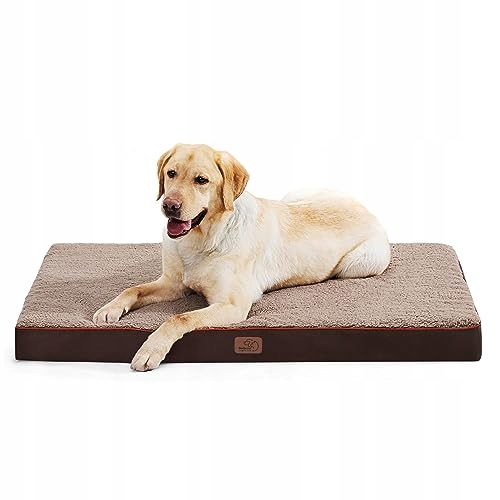 BEDSURE ortopedyczne legowisko dla dużych psów - 112x81x7.6cm poduszka dla psa, puszysta mata dla psa, zmywalny materac dla psa w kolorze brązowym dla dużych psów