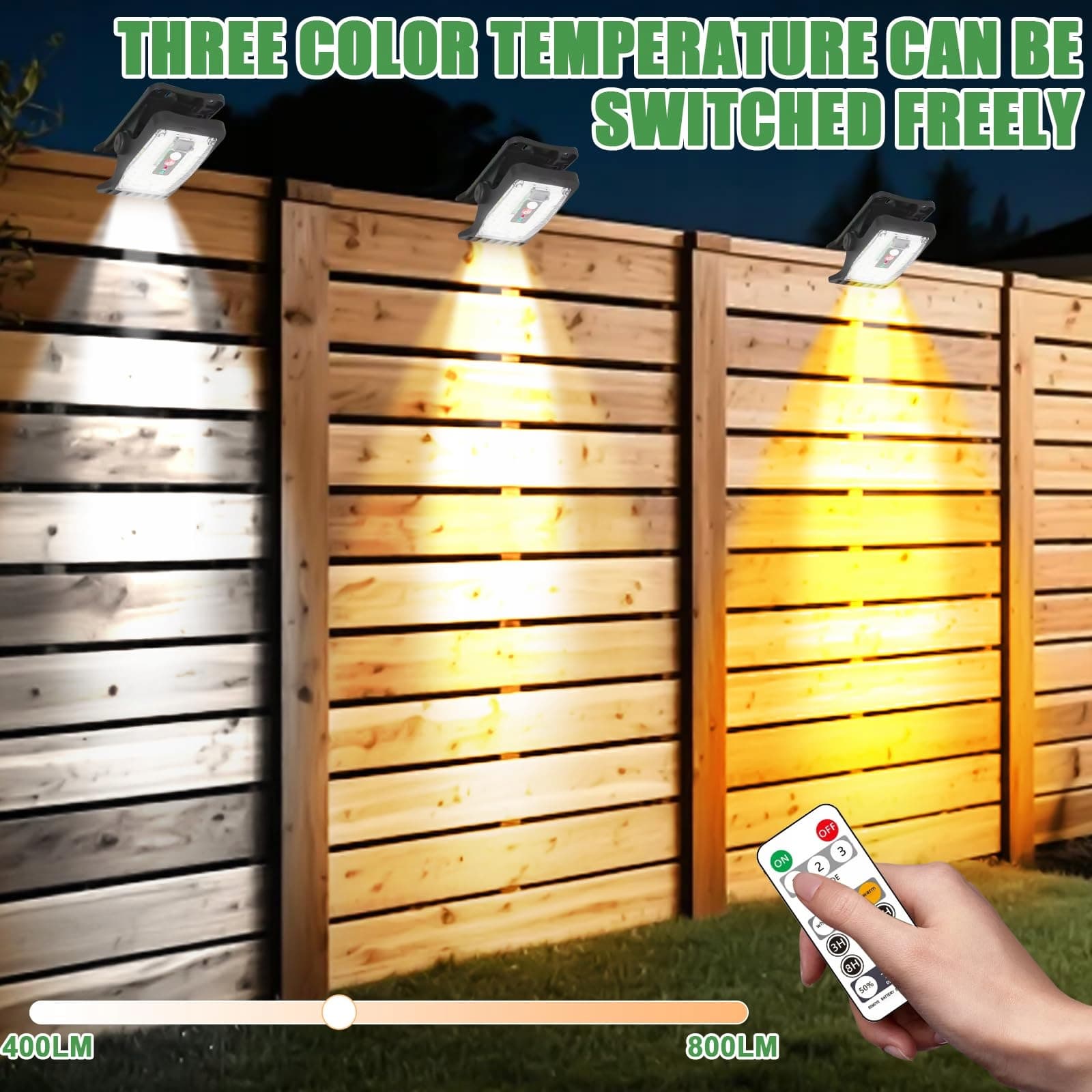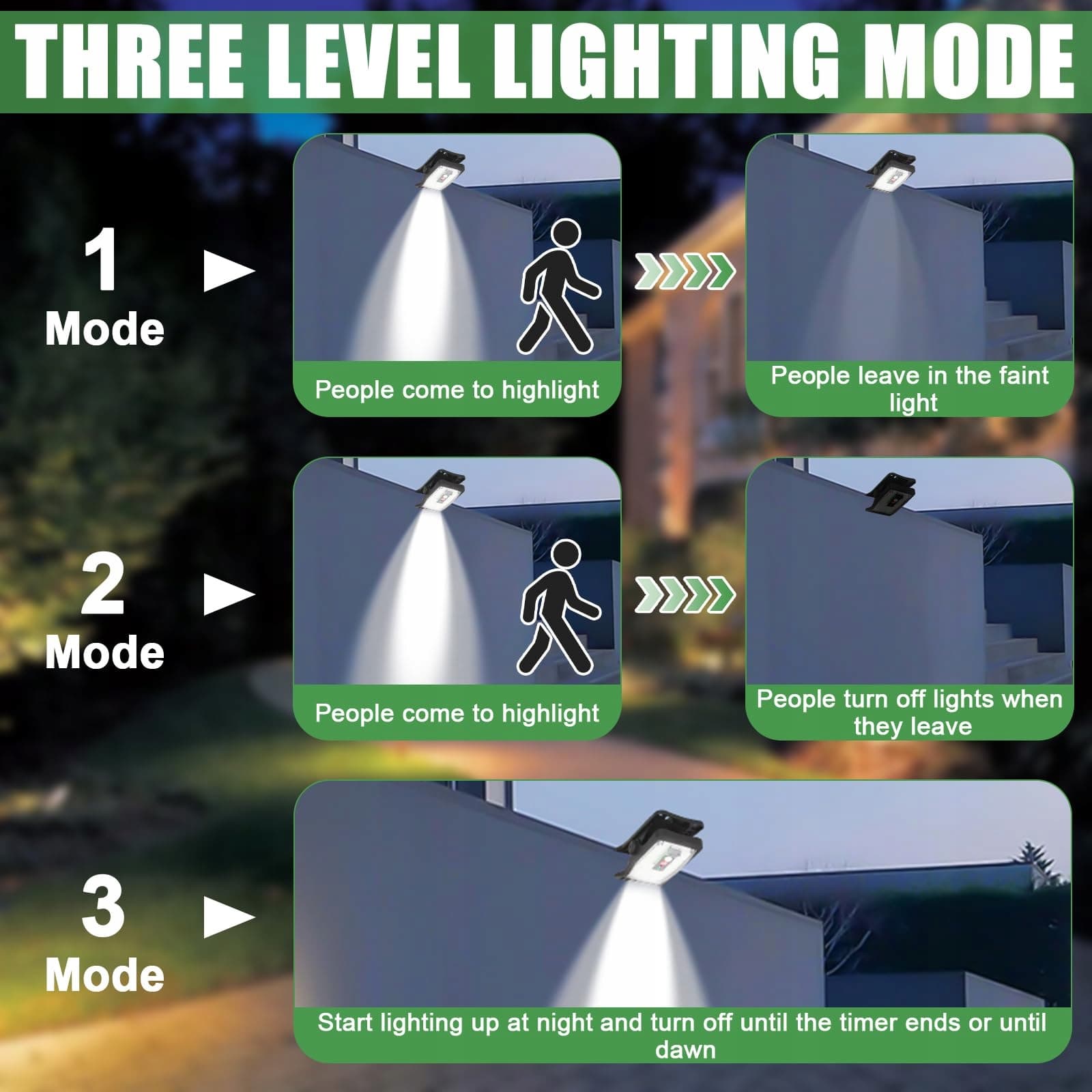 【Precyzyjny czujnik ruchu】Wybierz spośród 3 temperatur barwowych - biała, neutralna i ciepła - aby stworzyć idealną atmosferę dla każdego miejsca na zewnątrz, od tarasu po kemping. Lampy solarne na zewnątrz mają zasięg wykrywania 5-7 metrów i automatycznie się włączają, gdy wykryją ruch osób lub przedmiotów
