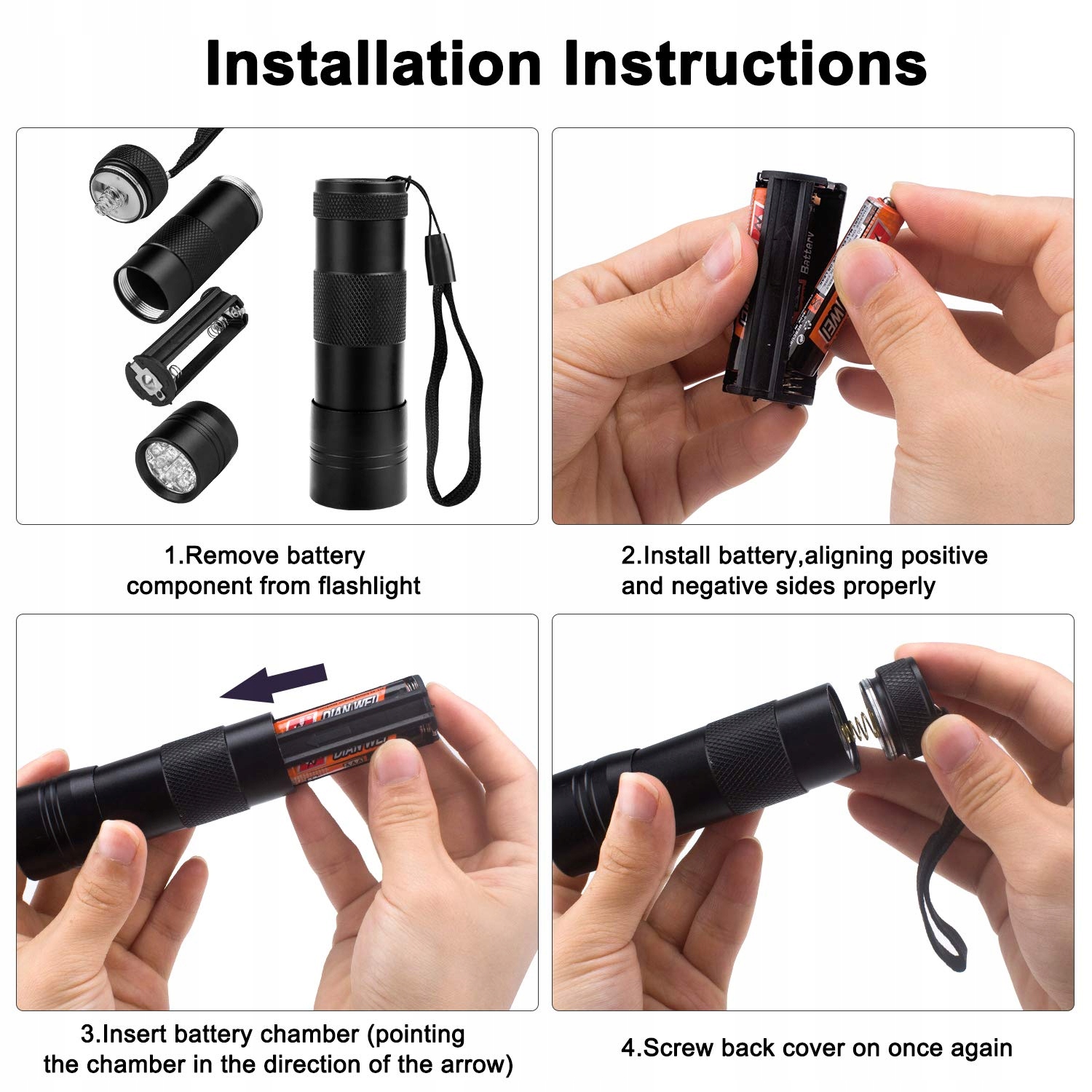 Dobra jakość. Ta czarna lampa UV ma 12 wysokiej jakości diod LED UV o długości fali 395 nm, jaśniejsza z dość skupionym światłem.