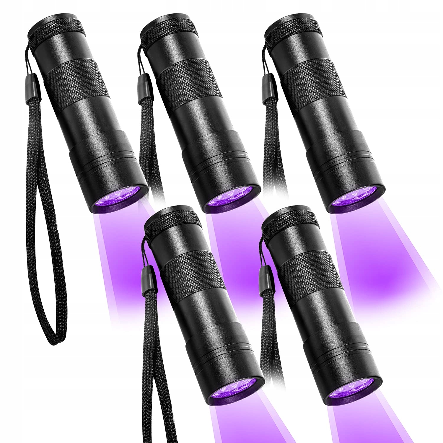Latarka UV Beinhome czarne światło [5 sztuk], lampa UV, detektor moczu dla zwierząt domowych do suchych plam moczu psa i kota, detektor fałszywych banknotów (w tym baterie)