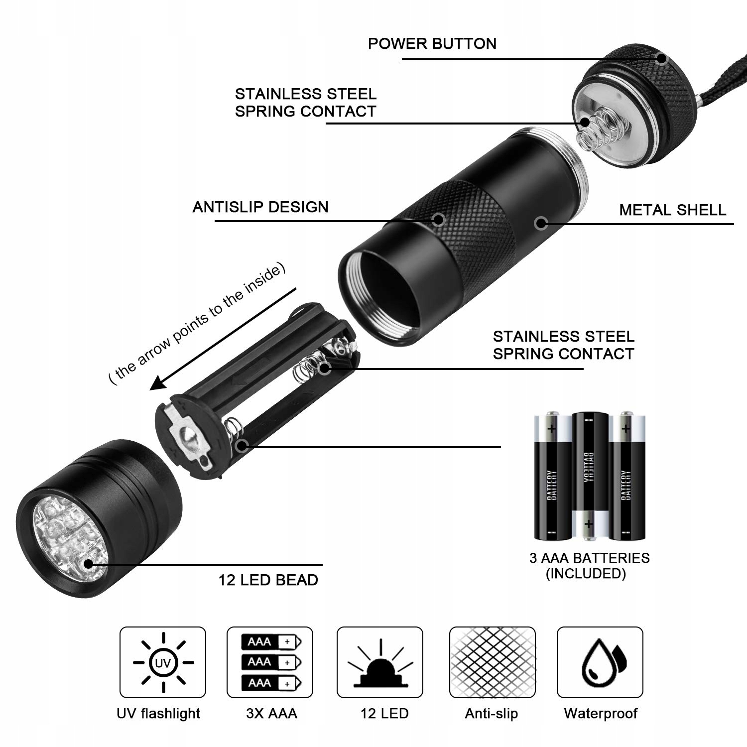 Szerokie zastosowanie. Do kontroli higieny w domu lub hotelu, do wykrywania plam moczu u Twojego zwierzaka, do innych plam na ubraniach, dywanach i meblach. Poszukiwanie skorpionów w ciemności. Identyfikacja waluty, biżuterii, dowodu osobistego, paszportu..