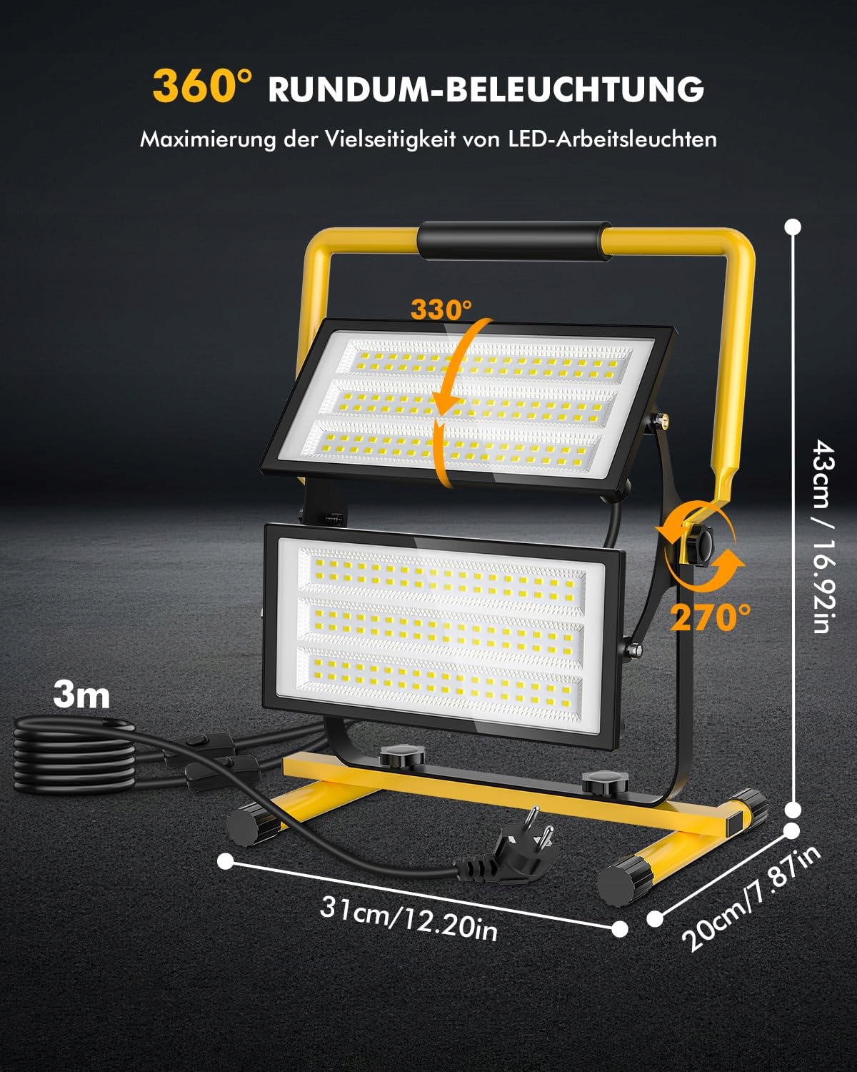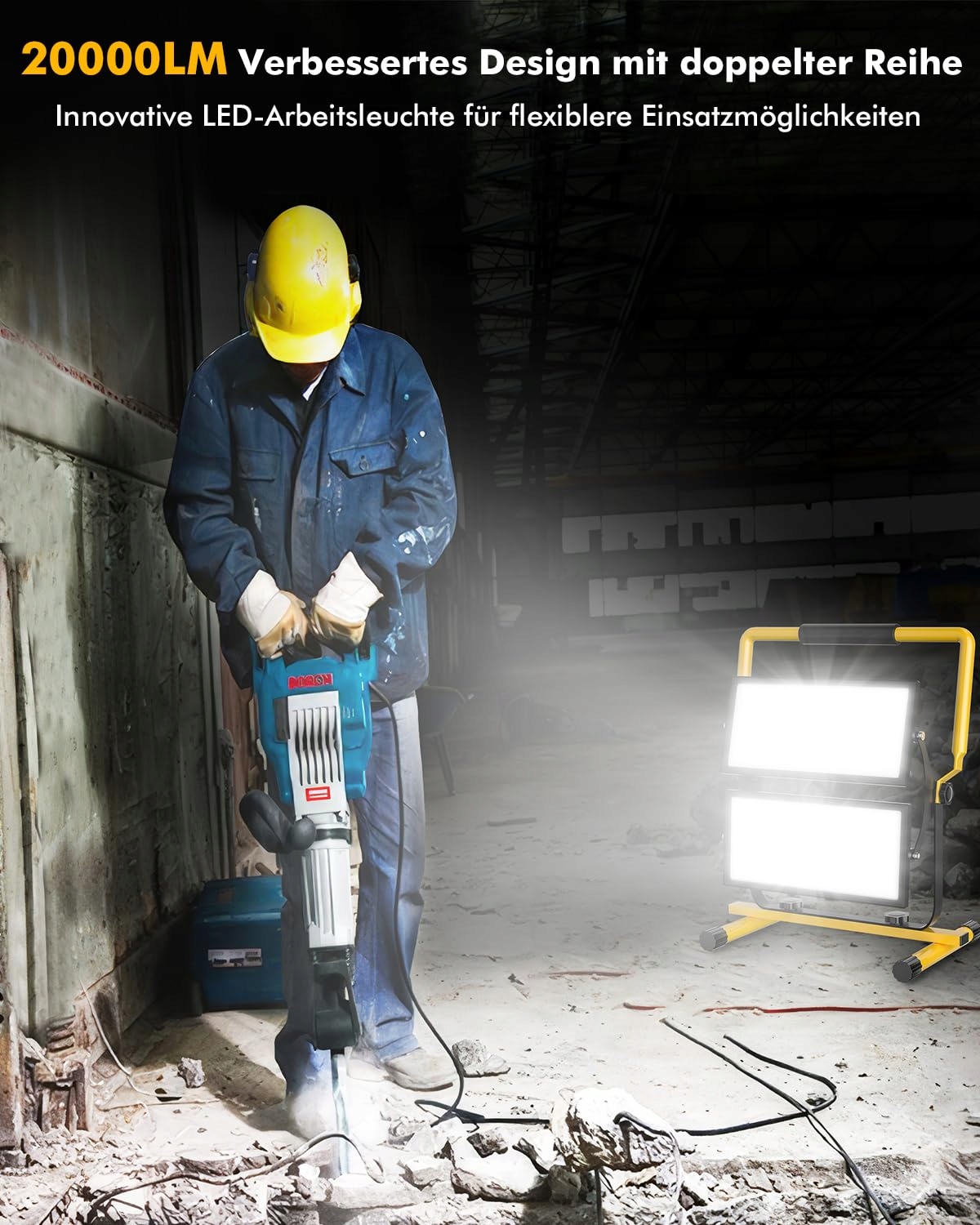 Bellanny LED Baustrahler 200W 20000LM Arbeitsscheinwerfer Arbeitsleuchte mit Stecker, 6500K Baustellenlampe - IP66 Wodoodporna lampa budowlana Strahler z 3m kablem dla warsztatu lub budowy garażu