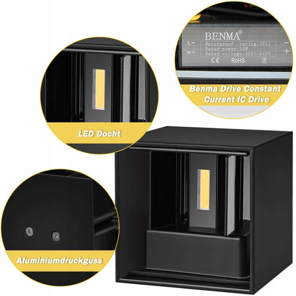 BENMA 12W Lampa Ścienna LED IP65 Ciepła Biała Do Wnętrz i Na Zewnątrz