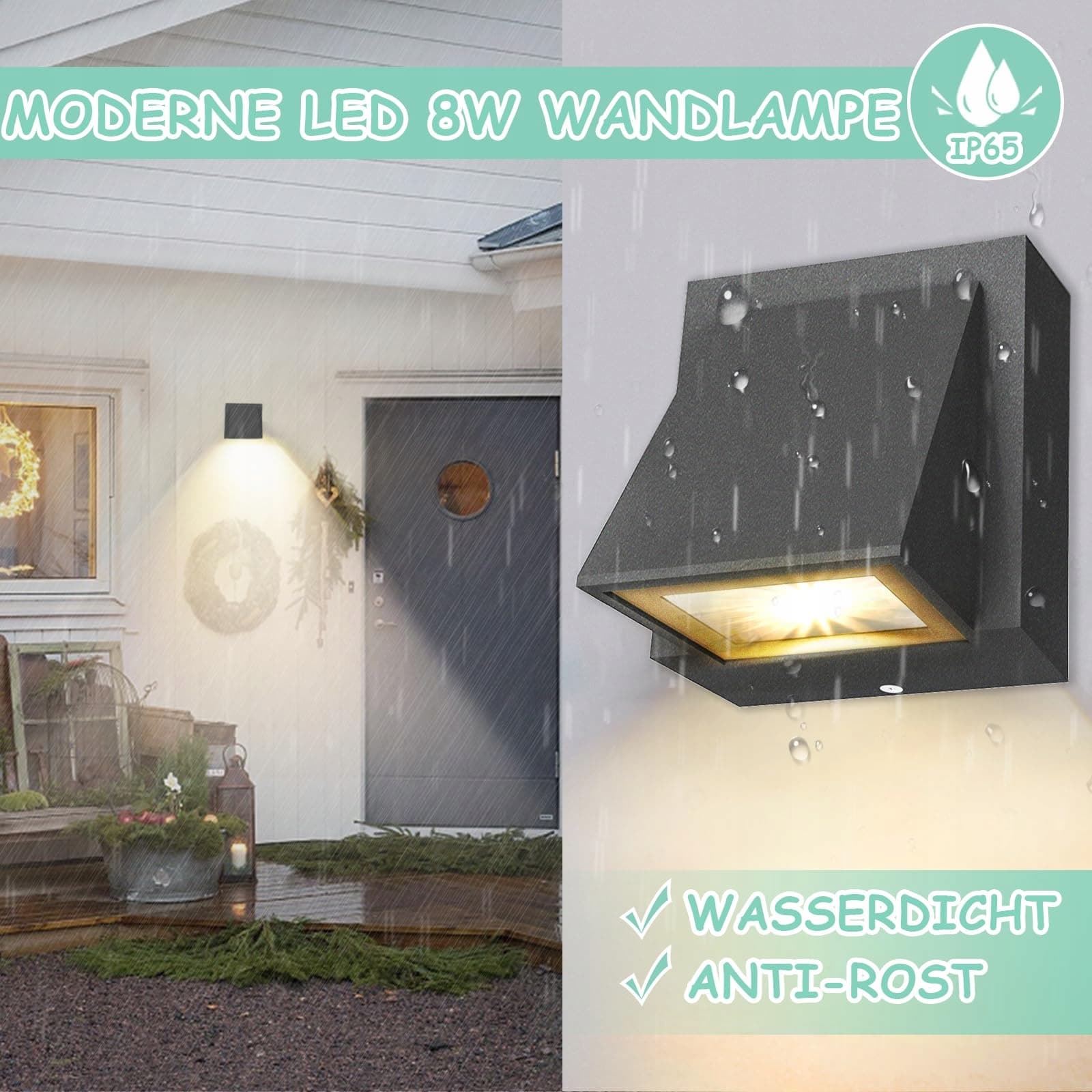 [Wodoodporność IP65]Kinkiet ma klasę ochrony IP65, jest to idealny LED kinkiet do wnętrz i na zewnątrz, takich jak salon, korytarz, balkon, ogród itp.