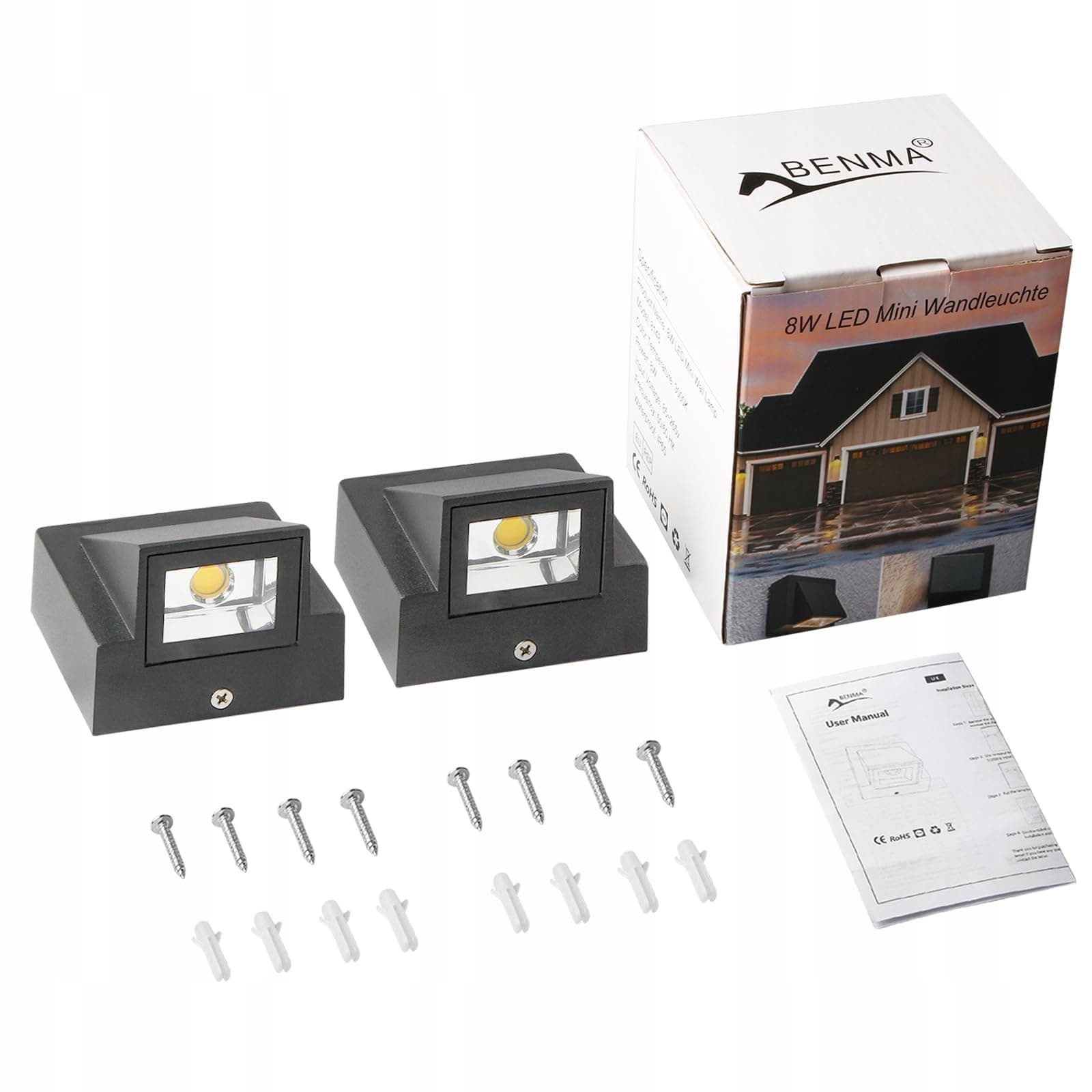 BENMA 8W LED Kinkiet Wewnętrzny Zewnętrzny 2 Sztuki Szary 3000K IP65 | Premium Supply