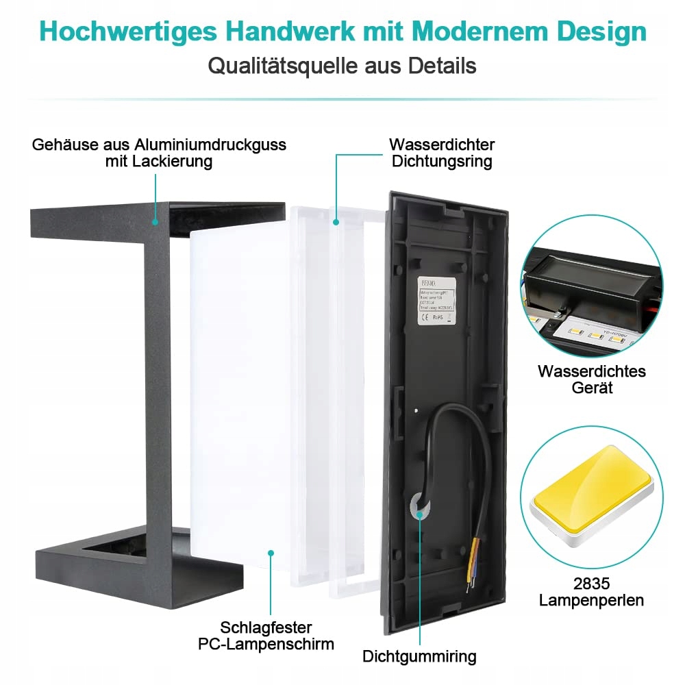 【Najwyższa jakość】 Abażur zewnętrznego kinkietu wykonany jest z wysokiej jakości akrylu i może być używany przez długi czas bez odbarwień. Żywotność do 50000 godzin. Aluminiowy kinkiet ma uszczelnioną konstrukcję, jest chroniony przed komarami i odporny na wilgoć.