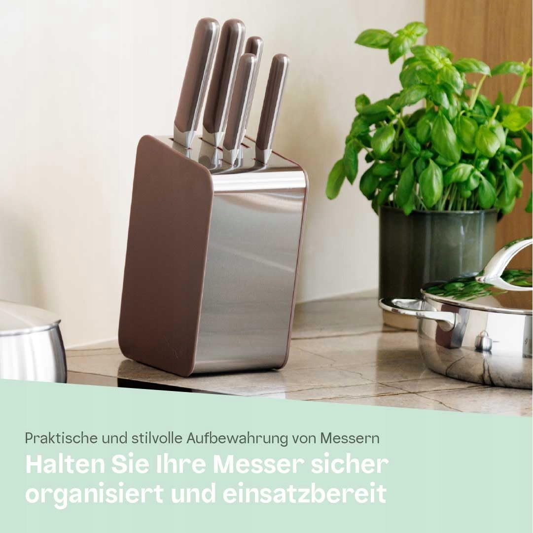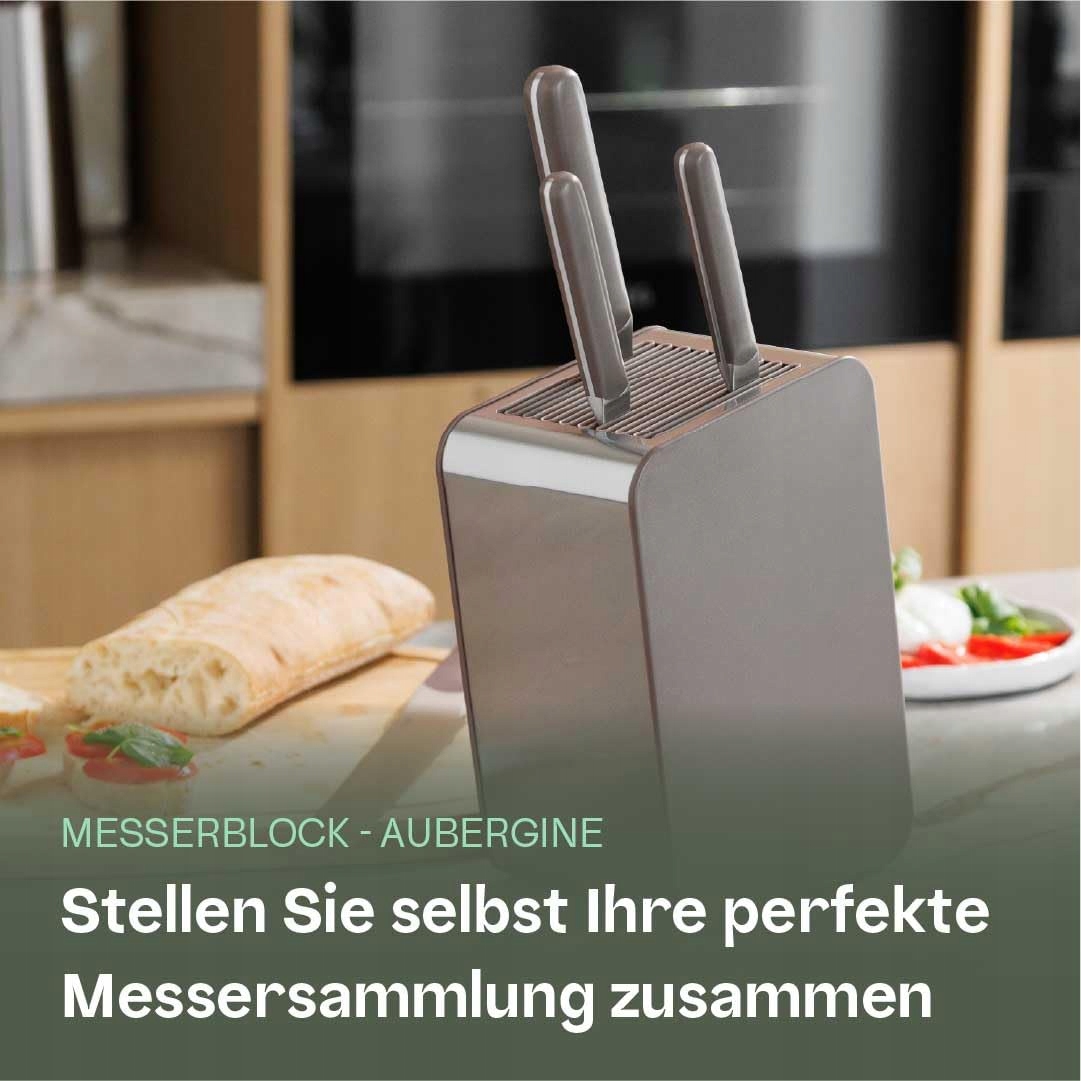 Elegancki, minimalistyczny design: Ponadczasowy, nowoczesny dodatek kuchenny w kolorze bakłażana. Doskonale komponuje się z każdym zestawem bloków na noże lub blokiem na noże ze stali nierdzewnej.
