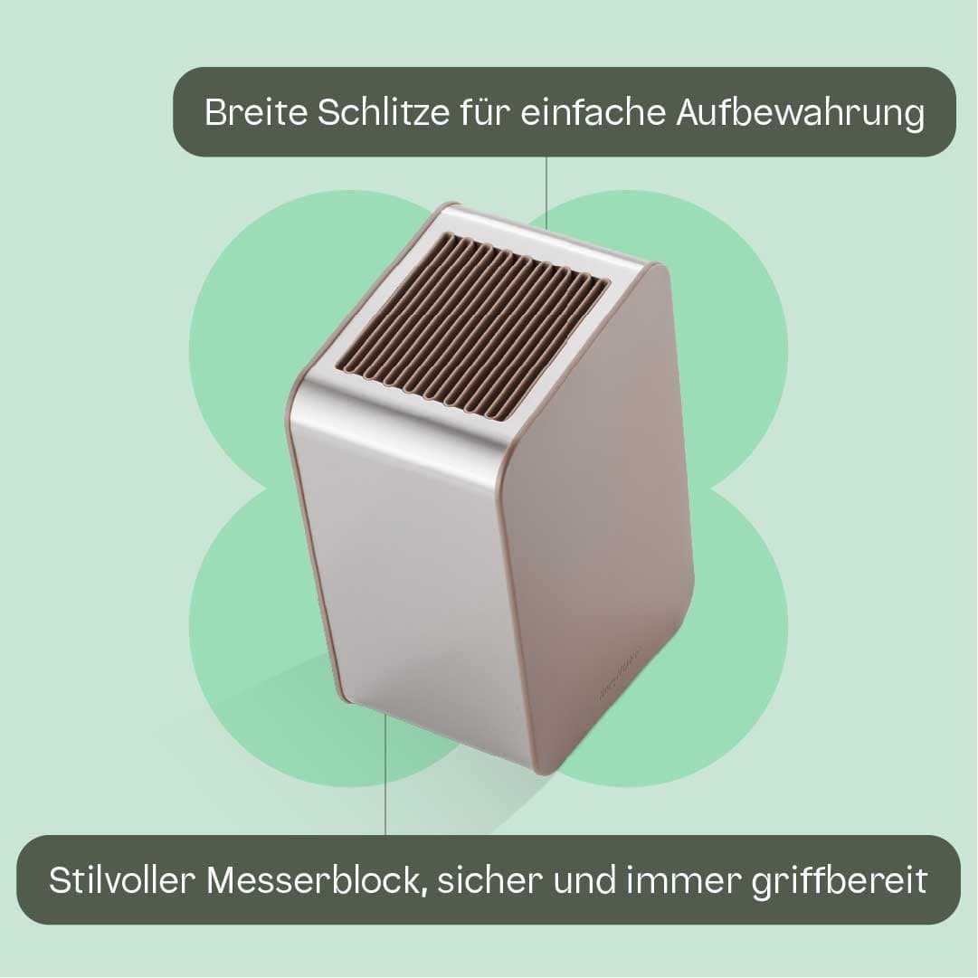 Antypoślizgowy i stabilny: Antypoślizgowa podstawa zapewnia maksymalną stabilność podczas wyjmowania lub wkładania noży. Niezawodny uchwyt na noże i akcesorium kuchenne, które łączy bezpieczeństwo i komfort.