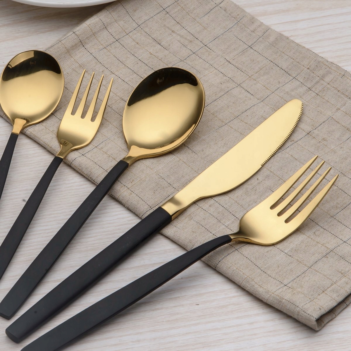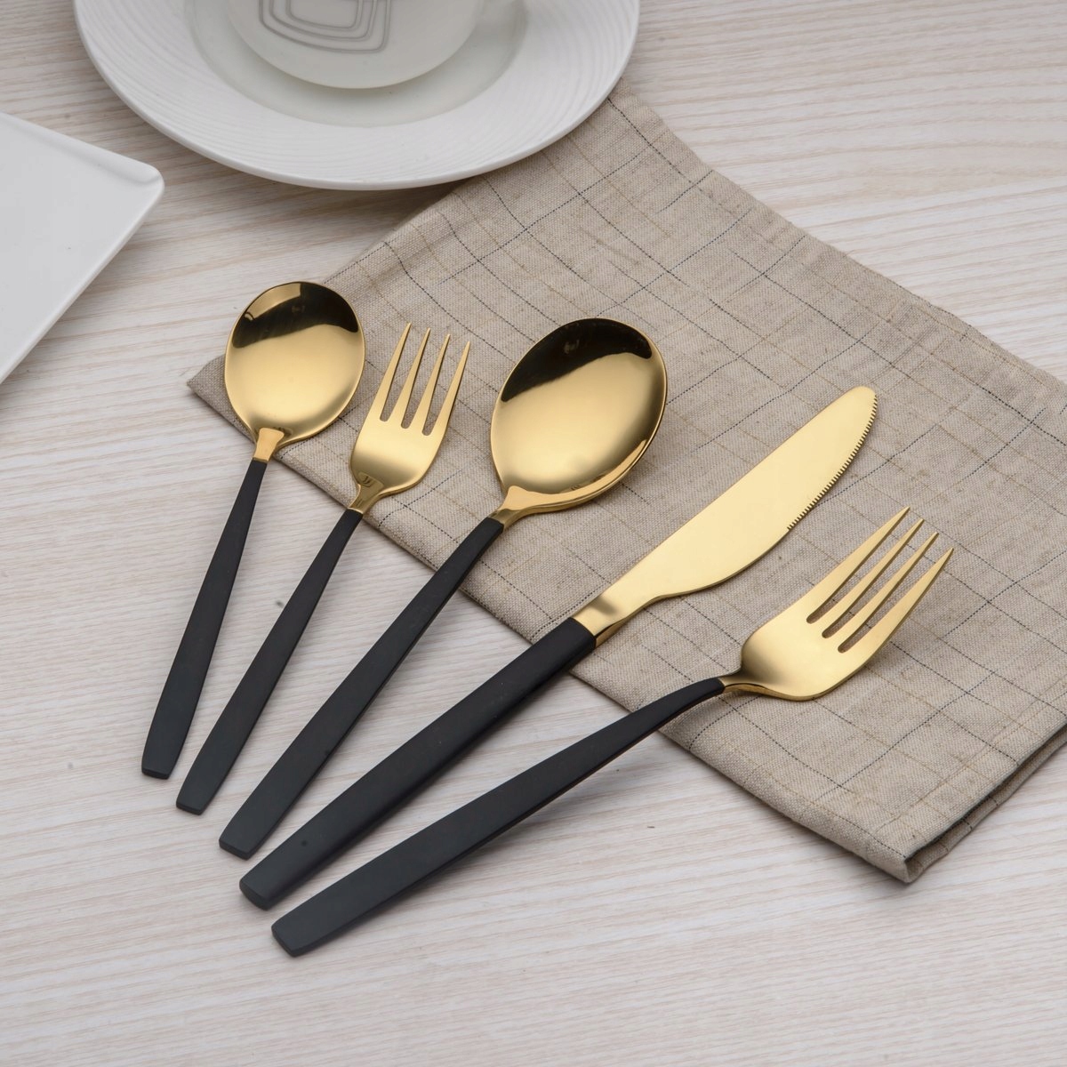 Wysokiej jakości powłoka tytanowo-czarna i złota, nakładana próżniowo w wysokiej temperaturze, zwiększa twardość powierzchni, zapobiegając zarysowaniom sztućców podczas użytkowania. Idealne do codziennego użytku, świątecznych obiadów, imprez, wesel, restauracji, hoteli lub innych formalnych okazji.