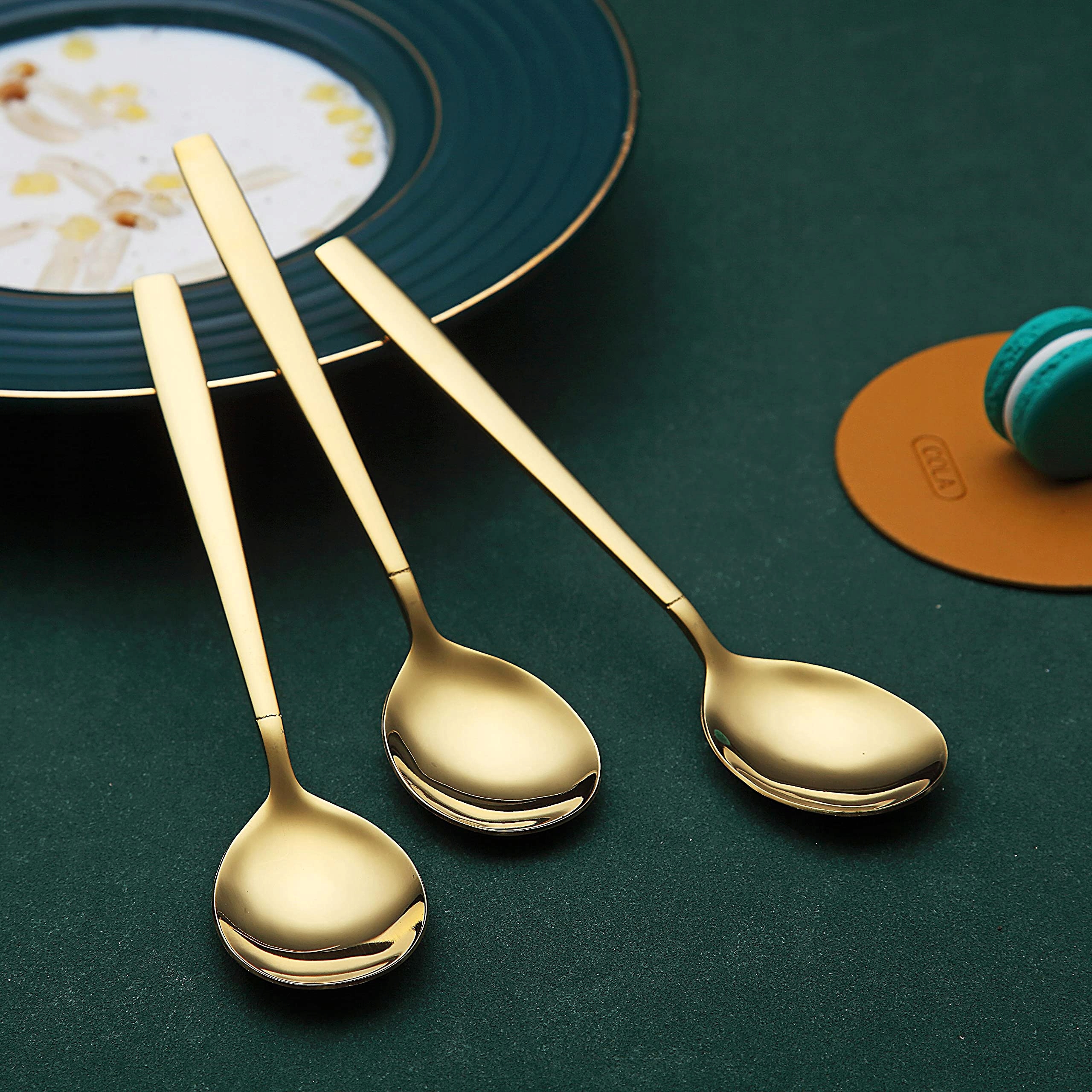 Zawiera 6 sztuk łyżek stołowych z powłoką tytanową błyszczące złoto dla 6 osób