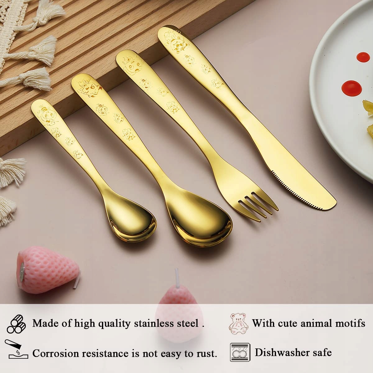 BERGLANDER Złoty Zestaw Sztućców Dla Dzieci 4 Części Tytan Złocenie | Premium Supply