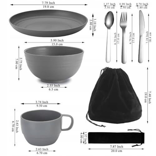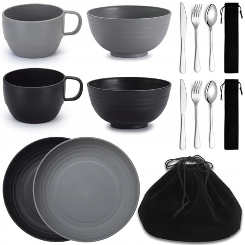 Zestaw sztućców turystycznych Berglander 2 sztuki, wielokrotnego użytku zestawy sztućców nóż, widelec, łyżka, kubki i talerze oraz miski, przenośny zestaw sztućców podróżnych, łatwy do czyszczenia, nadający się do zmywarki