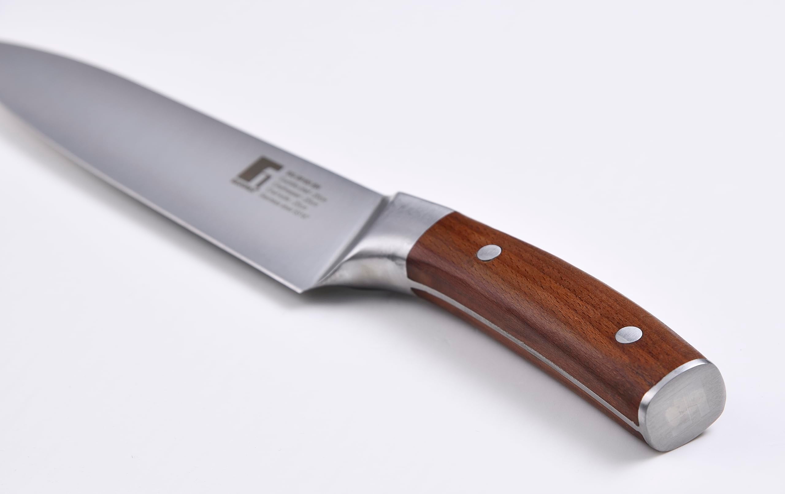 Jakość cięcia: Ten nóż ze stali nierdzewnej obiecuje doskonałe cięcia i wyjątkową trwałość, sprzeciwiając się intensywnemu użytkowaniu w każdej nowoczesnej kuchni.