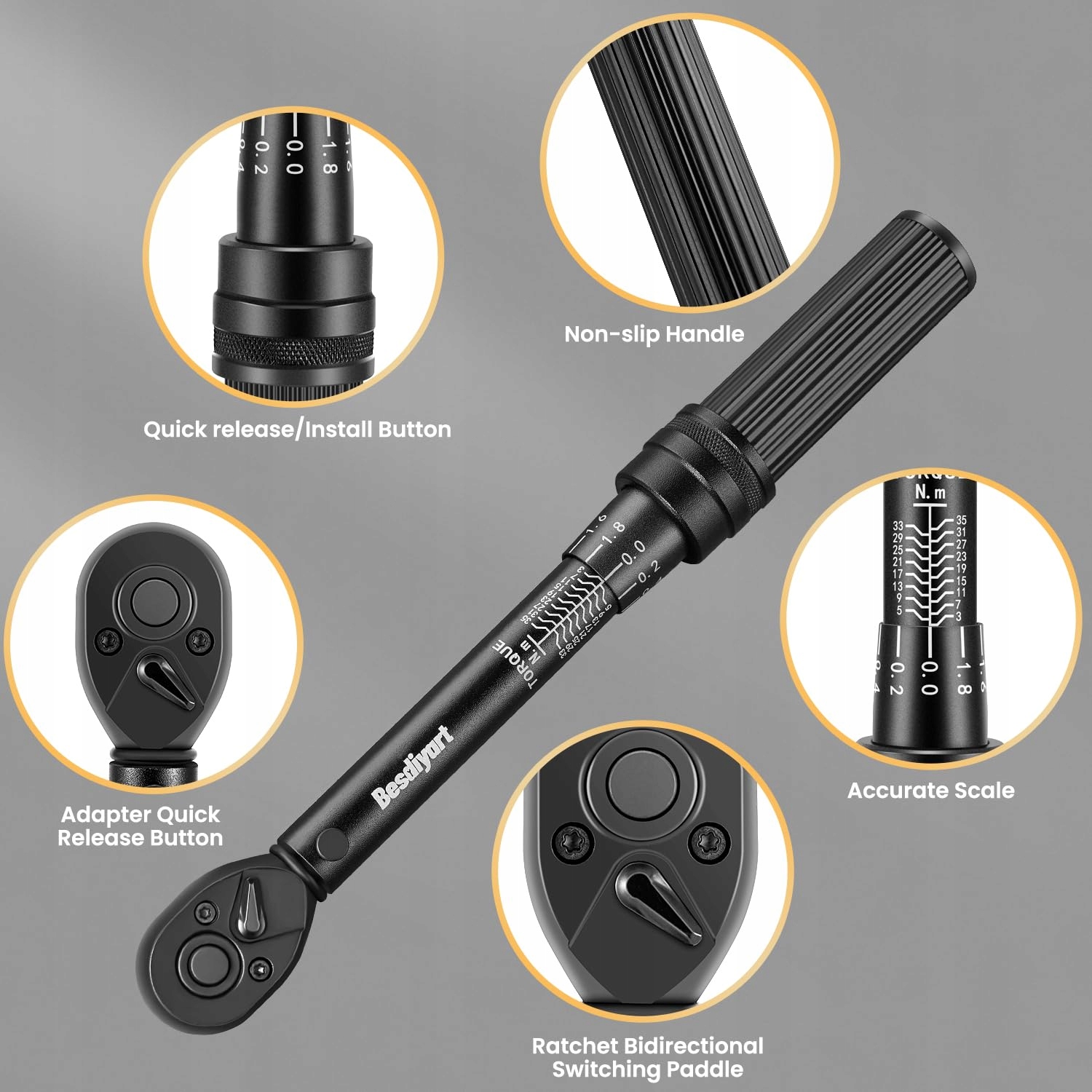 Dokładność momentu obrotowego: Klucz dynamometryczny do rowerów 3-35 Nm w krokach co 0,2 Nm, ±3% dokładność błędu. Kontrastowa skala dwuzakresowa z odczytem do 0,2 pomaga w dokręcaniu rur, kierownic, wsporników siodeł, opon itp. z wymaganym momentem obrotowym, co jest idealne do dokręcania wrażliwych komponentów z włókna węglowego bez ich uszkodzenia.