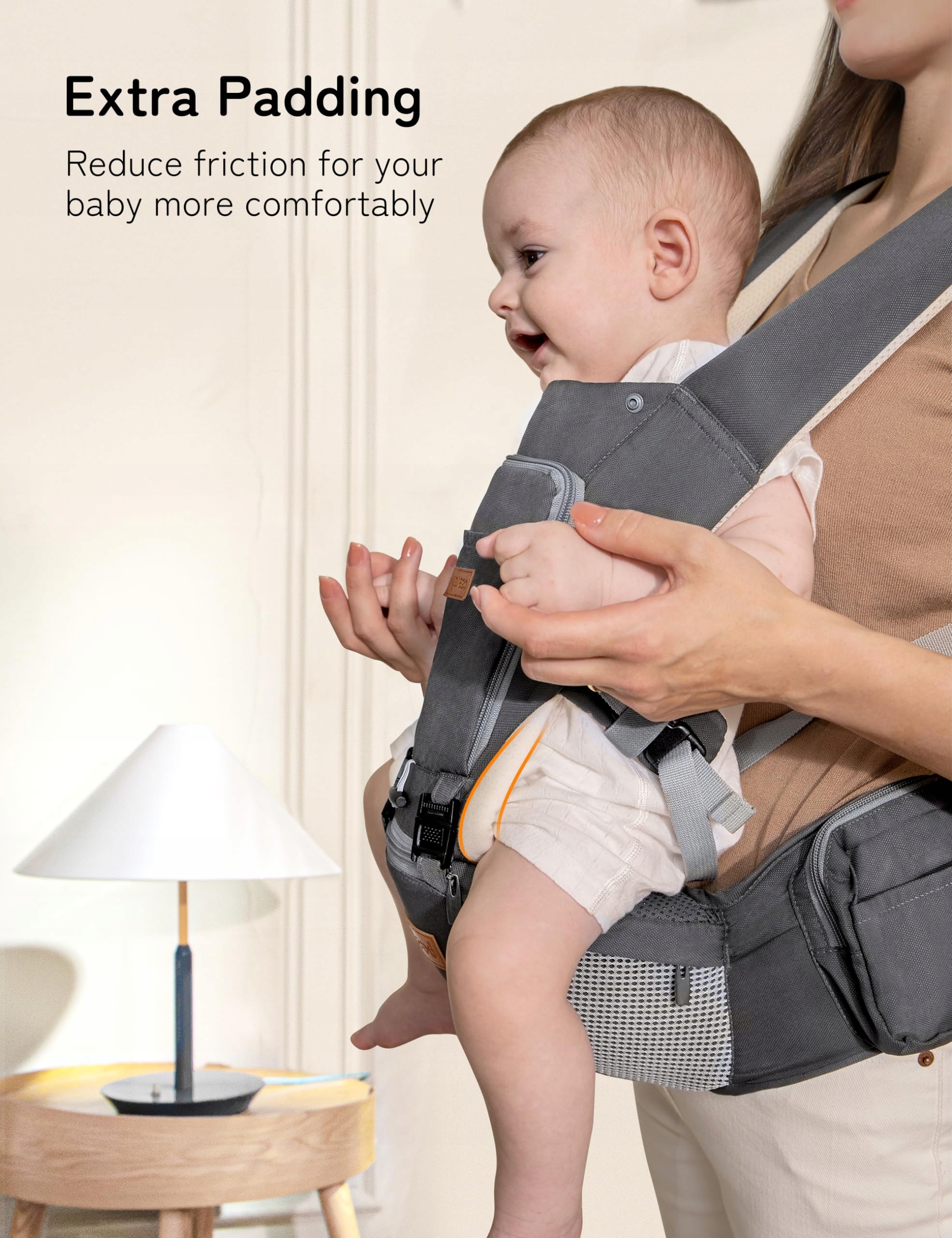 besrey Nosidełko dla dziecka od 6 miesięcy, noszenie dziecka przodem, siedzisko biodrowe, nosidełko, pas do noszenia dziecka, pomoc w noszeniu dzieci Szary