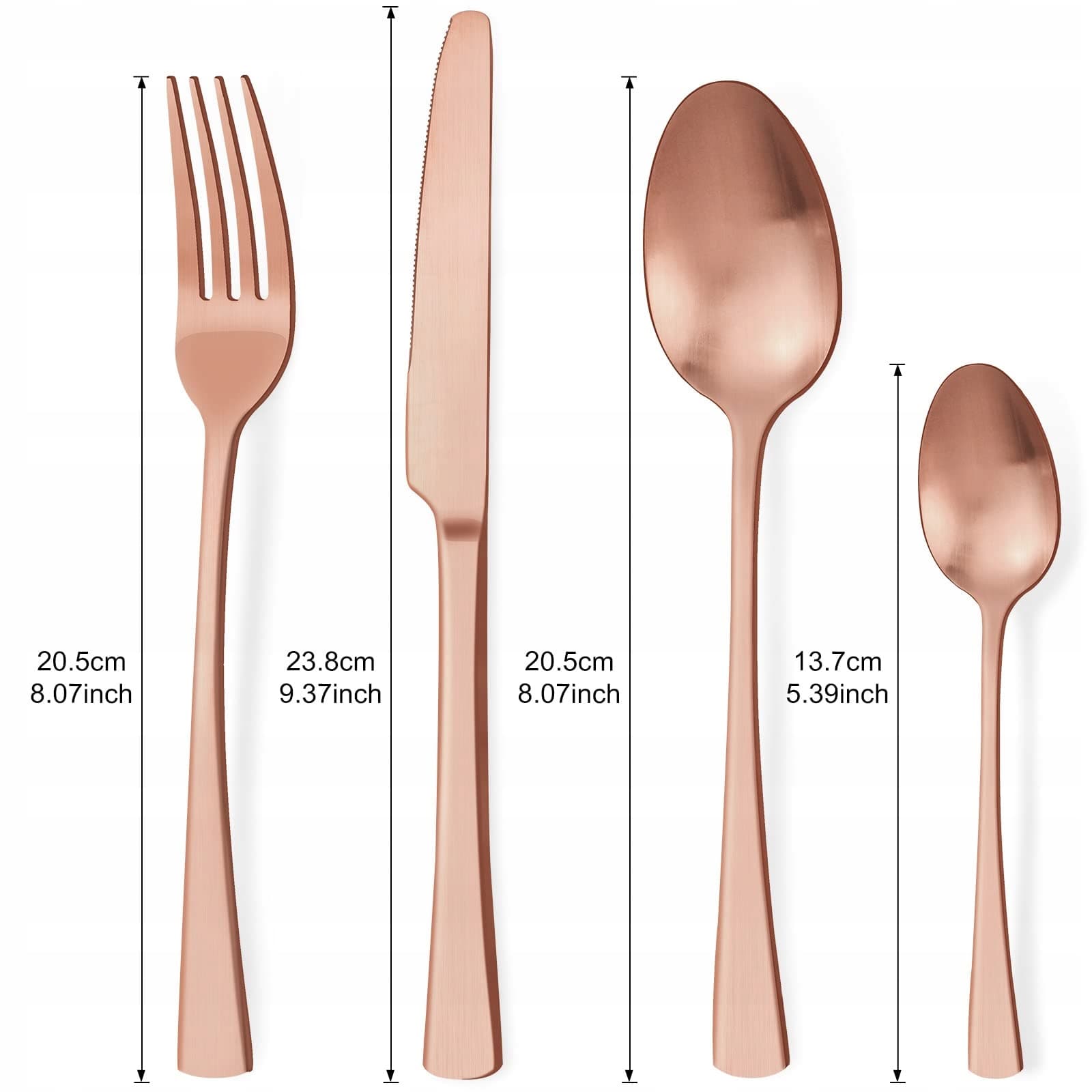 【Doskonałe rzemiosło】Zestaw sztućców ze stali nierdzewnej wykorzystuje proces galwanizacji próżniowej, który nie łatwo traci kolor. Ponadto różowo-złoty wygląd, który wyróżnia się na tle zwykłych naczyń, tworzy elegancką, szlachetną i luksusową atmosferę podczas posiłków. W codziennym życiu możesz używać zmywarki do czyszczenia, nie martwiąc się o uszkodzenia, co oszczędza dużo czasu.