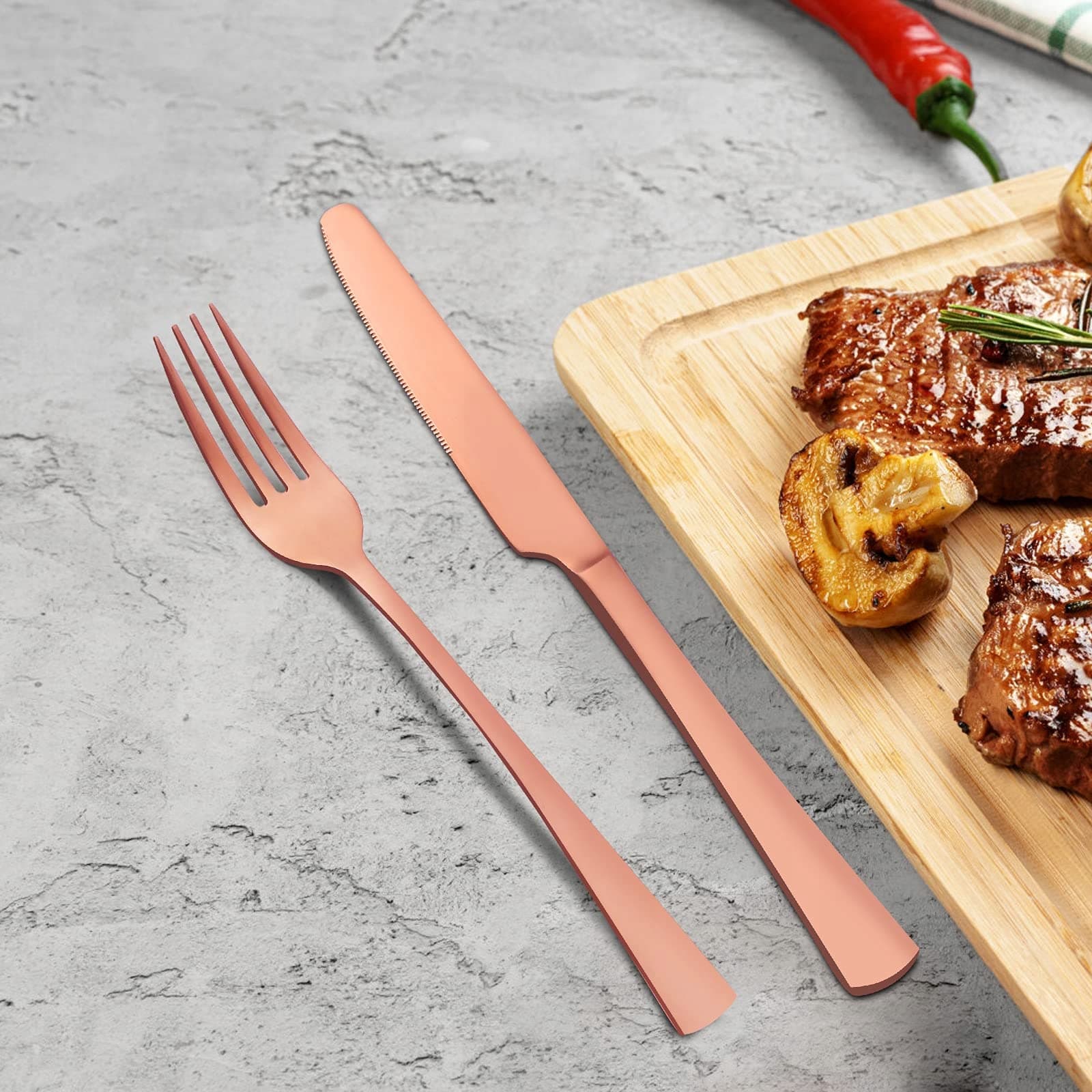 BESTDIN Zestaw Sztućców 24 Części Stal Nierdzewna Różowe Złoto Matowe | Premium Supply